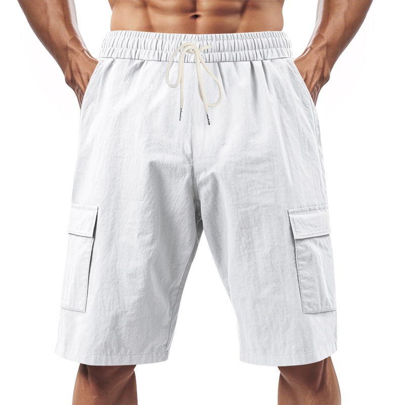 2025 국경 아마존 여름 남자 가벼운 통기성 린넨 느슨한 툴링 멀티 포켓 캐주얼 반바지 바지