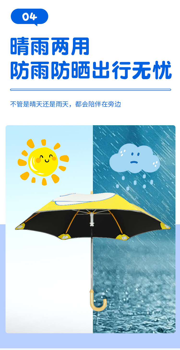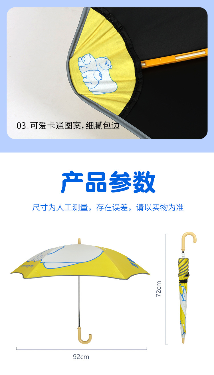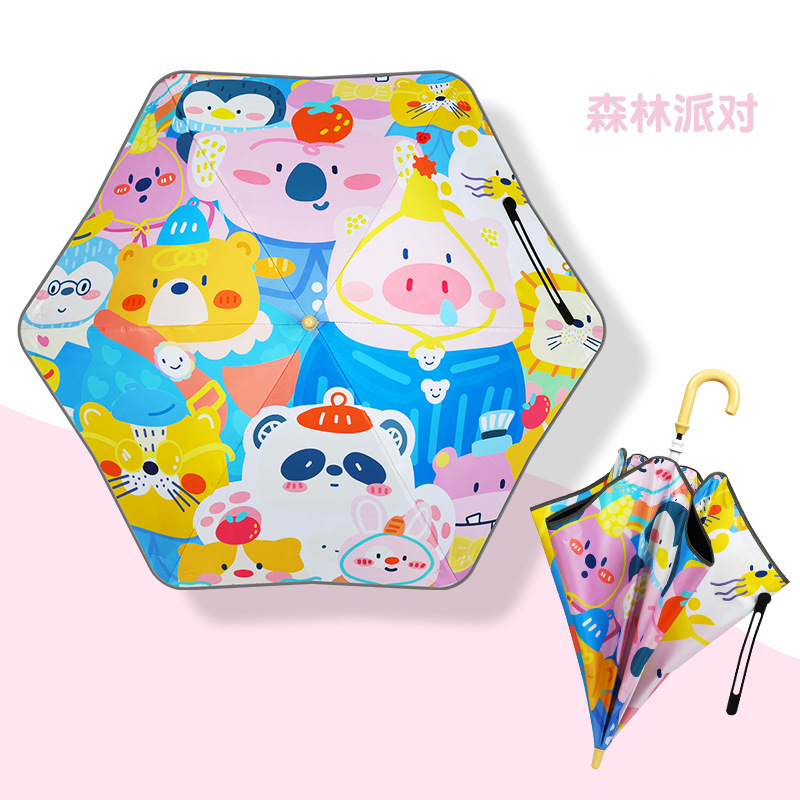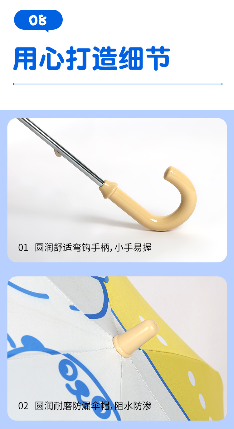 학생을위한 어린이 우산 학교 소녀 라운드 코너 아기의 울트라 라이트 아기 소년의 긴 손잡이 우산 만화