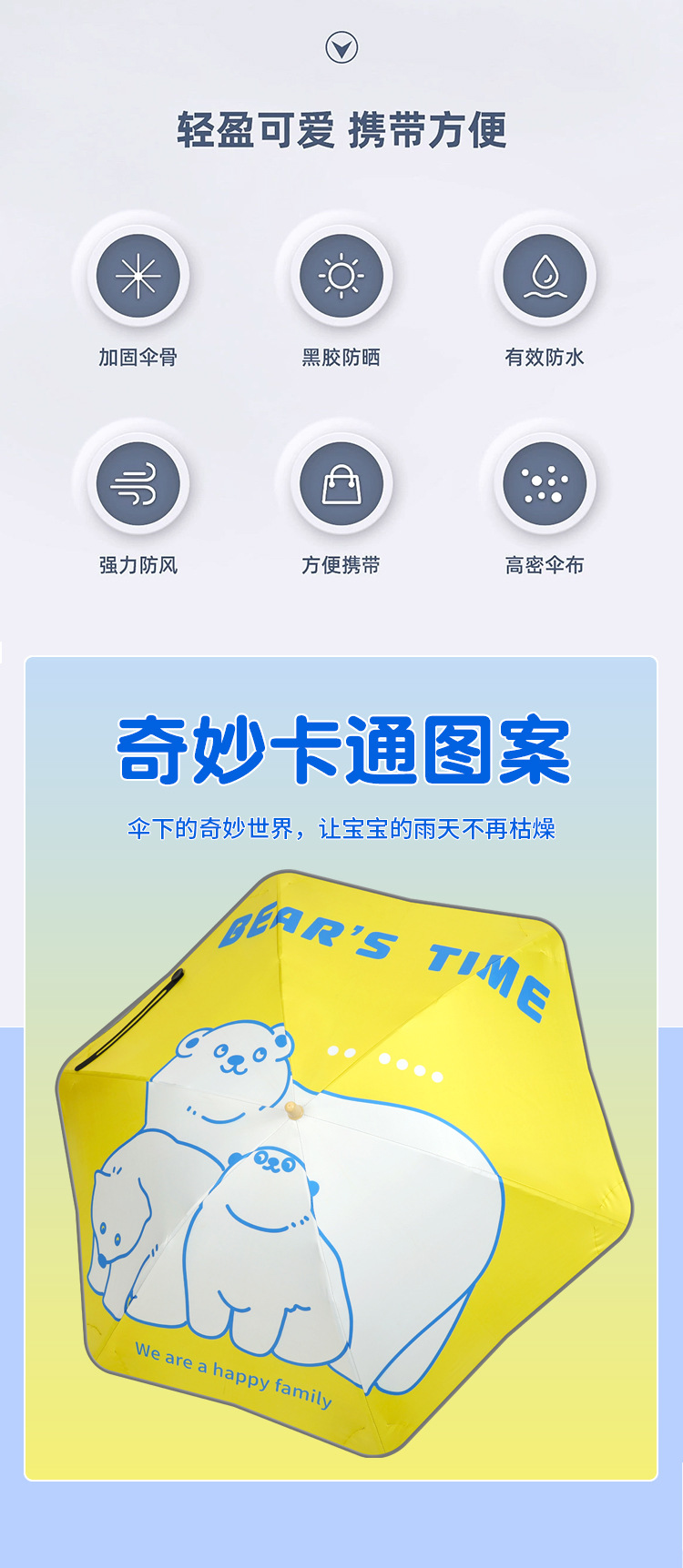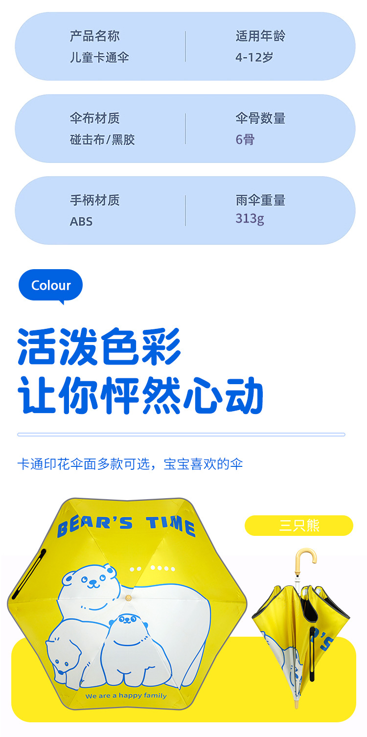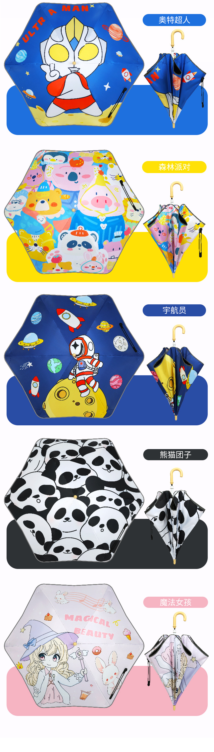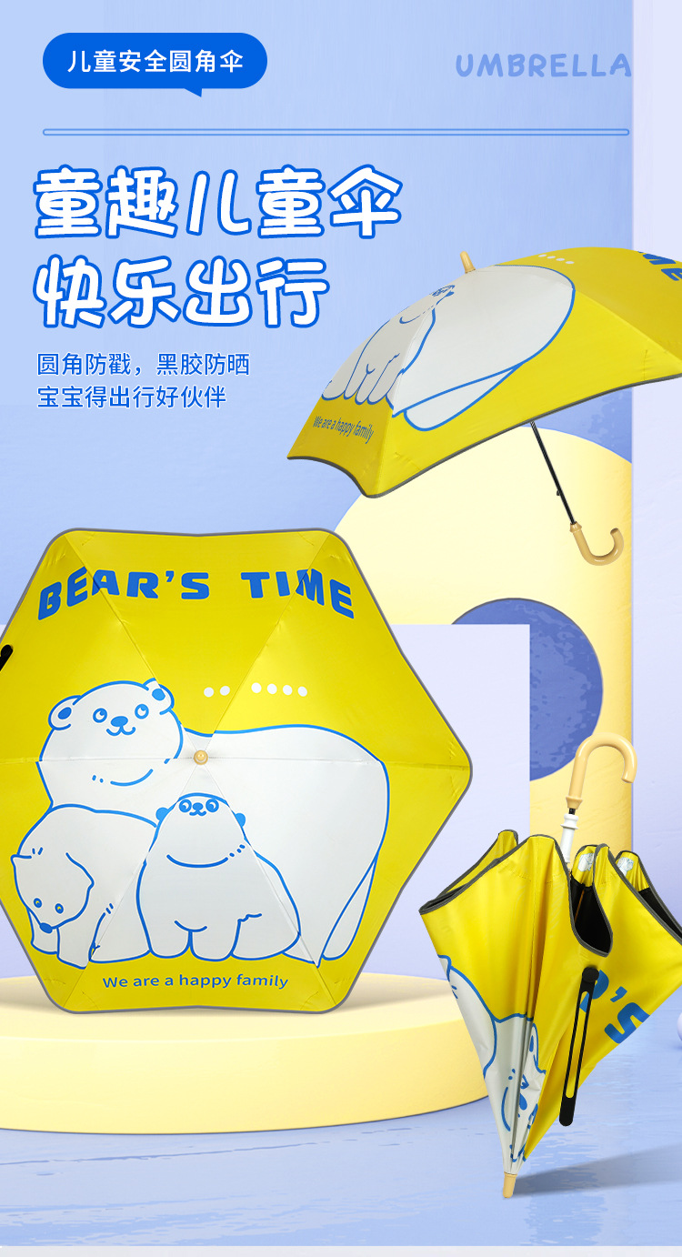 학생을위한 어린이 우산 학교 소녀 라운드 코너 아기의 울트라 라이트 아기 소년의 긴 손잡이 우산 만화스토어 가기