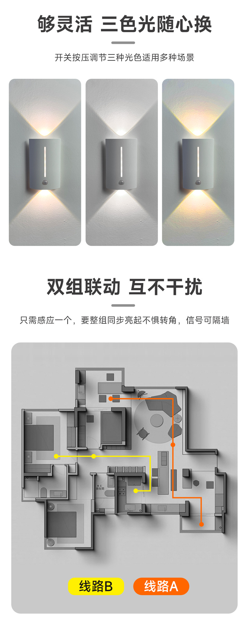 연계 유도 벽 램프 그룹 링크 국경 간 연결 지능형 야간 조명 인체 유도 램프 침실 복도 건물스토어 가기