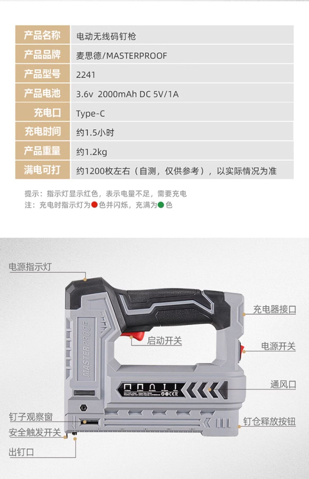 Maiside 네일 건 5 대 1 전기 네일 건 리튬 코드 네일 건 목공 새 네일 머신 네일 건 홈