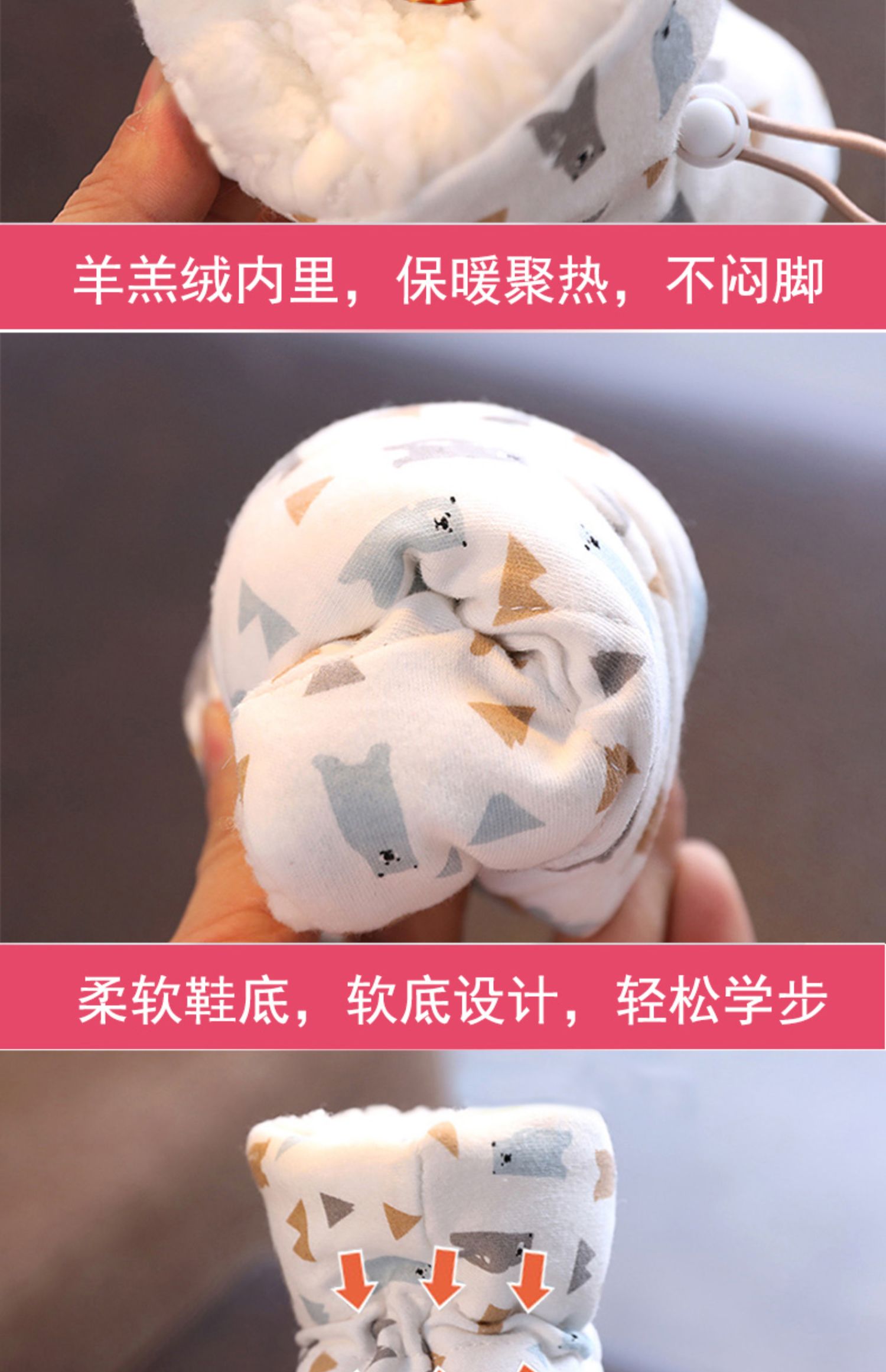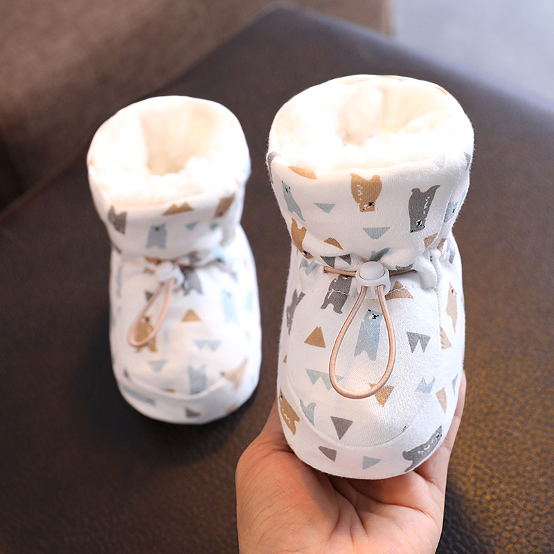 Tiantai Hualian 가을과 겨울 신생아 아기 신발 부드러운 밑창 코튼 신발 기모 발 보호 0-3 월 6 일 소년 소녀를위한 아기