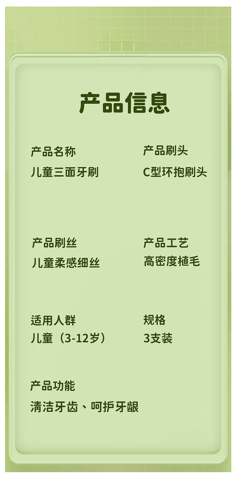 [3 팩] 3 ∼ 12 세 어린이 연발머리 3 면 칫솔