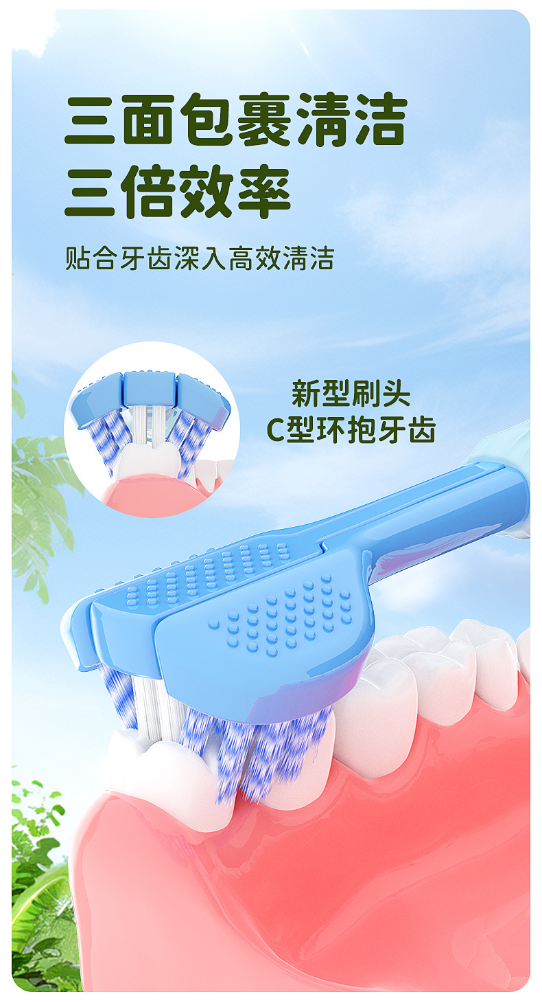 • [2개입, 색상 랜덤] 삼면 공룡칫솔
