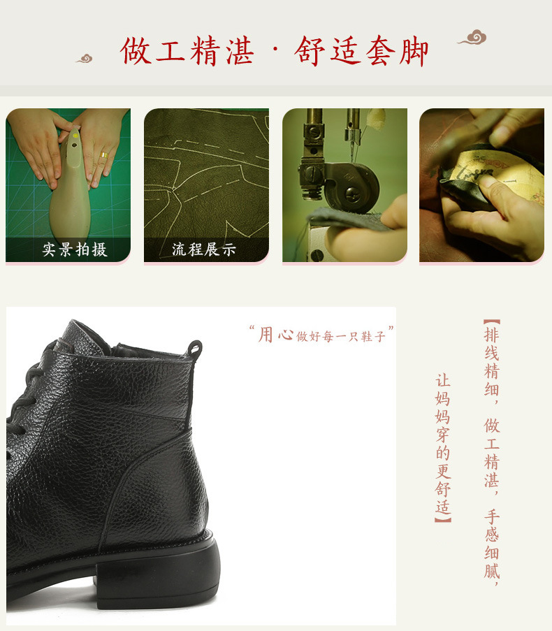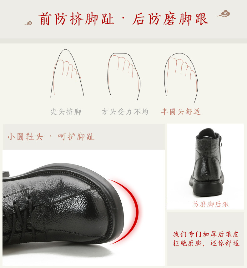 가을 새로운 탑 레이어 Cowhide 미드 힐 소프트 밑창 여성용 발목 부츠 레트로 캐주얼 정품 가죽 마틴 따뜻한 여성용 코튼 신발스토어 가기