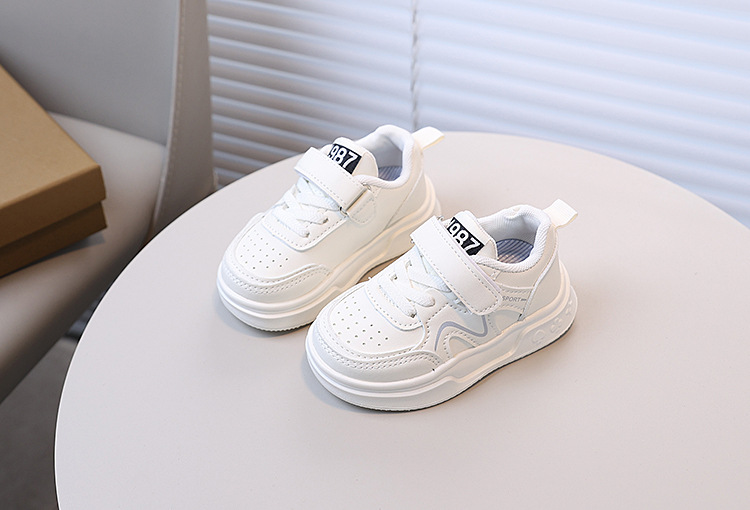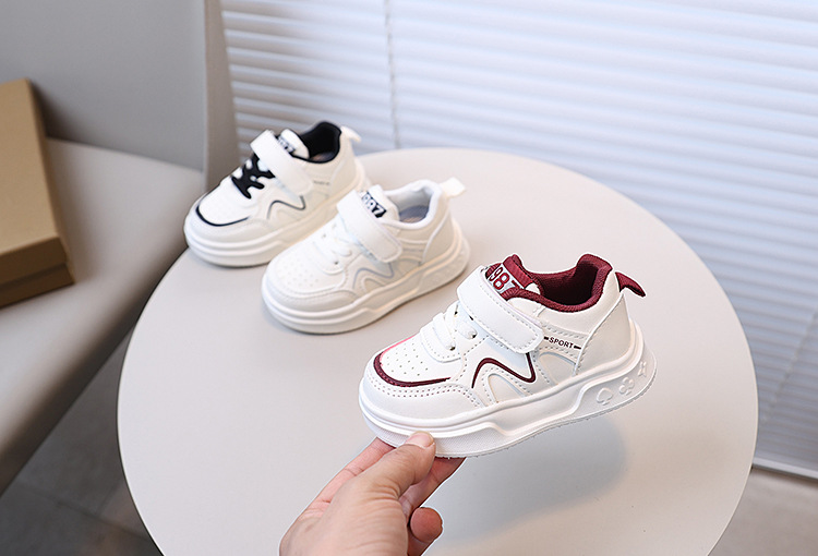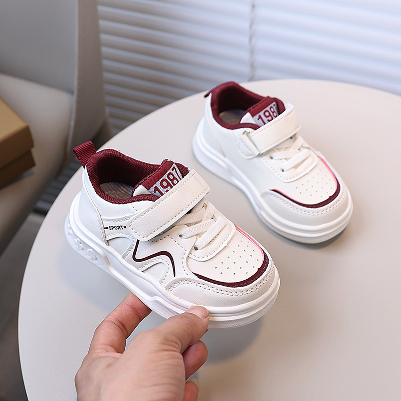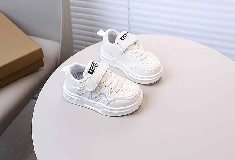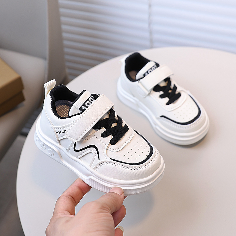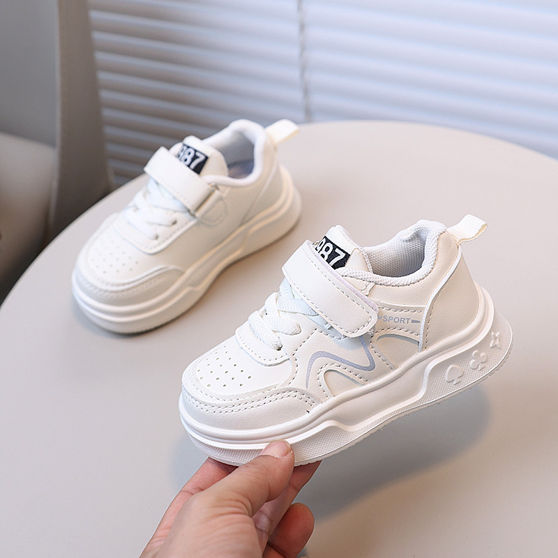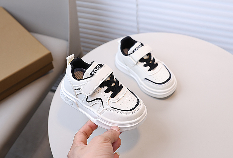 봄 2025 년 새 어린이 가죽 신발 소년 운동화 한국식 부드러운 밑창 소녀 흰색 신발 1-6 세