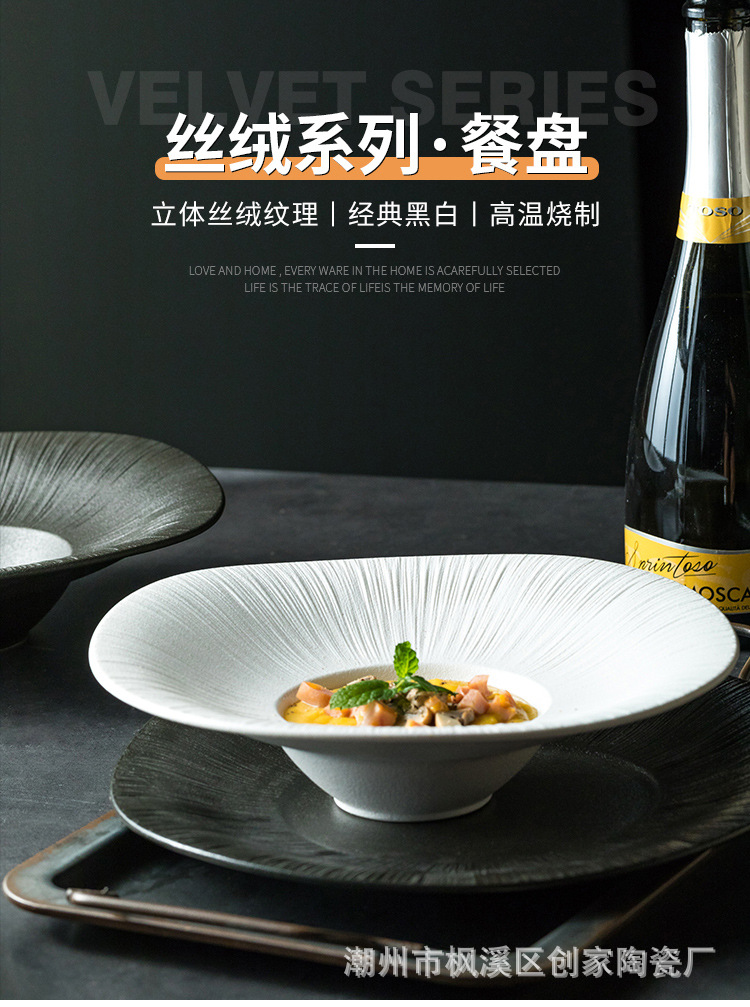 창조적 인 새로운 세라믹 식기 일본 스테이크 서양 음식 접시 큰 평판 스파게티 접시 도매 서리 스프 그릇