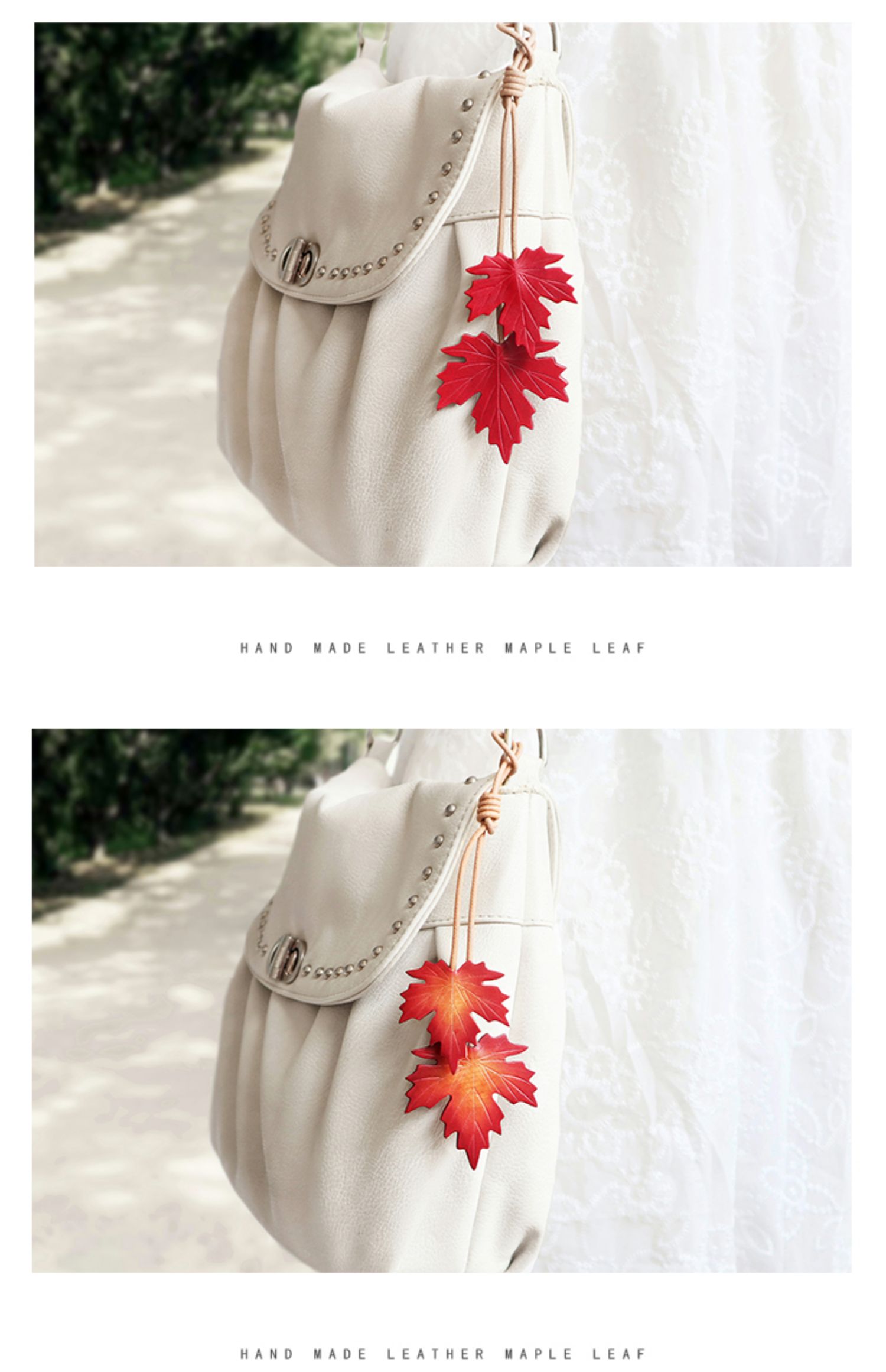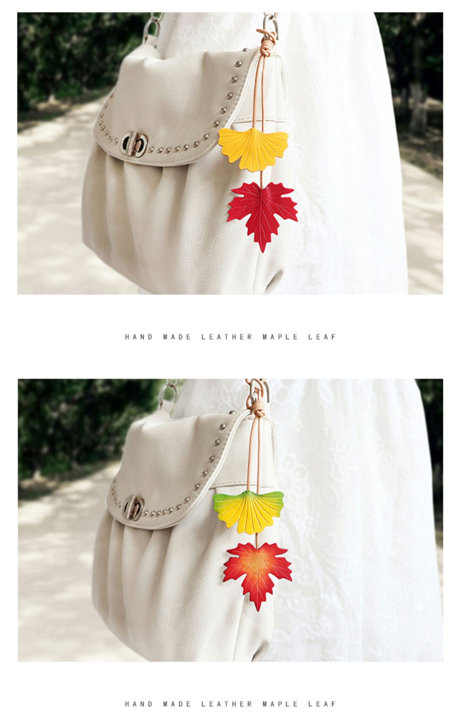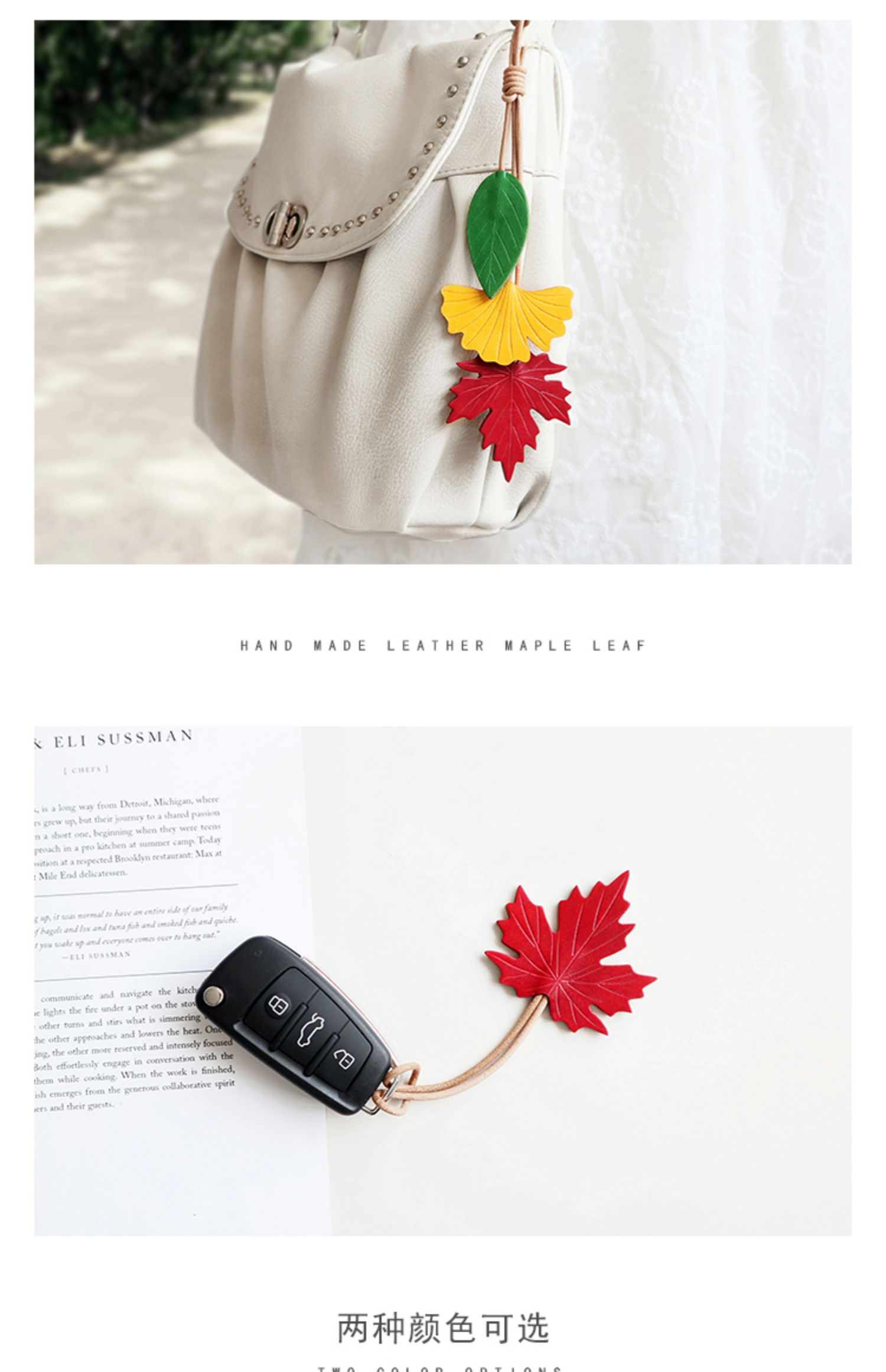 Tiantai Hualian 원래 수제 정품 가죽 메이플 리프 백 펜던트 은행나무 잎 자동차 키 체인 펜던트 아트 핸드북 교수형스토어 가기