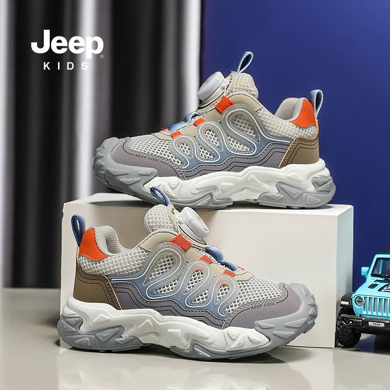 지프 어린이 신발 2025 봄과 가을 새로운 도착 회전 버튼 운동화 편안한 경량 통기성 메쉬 여성용 어린이 신발