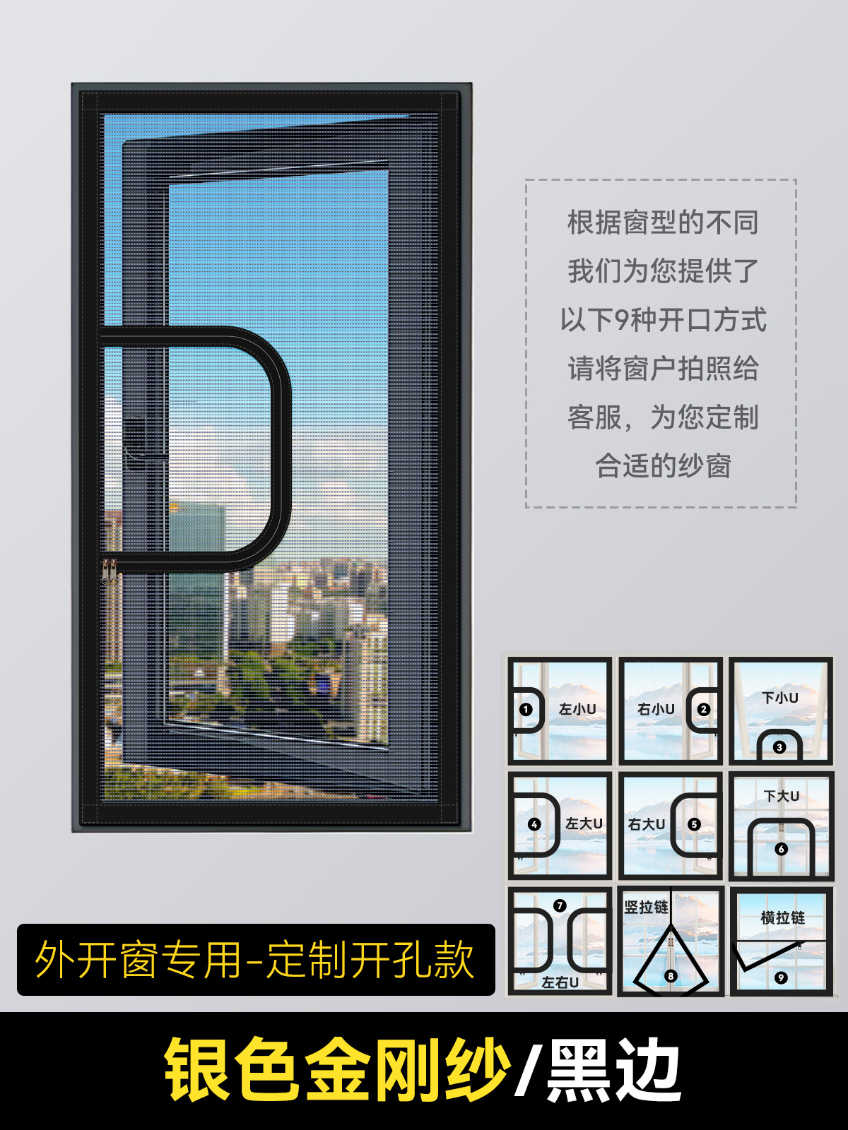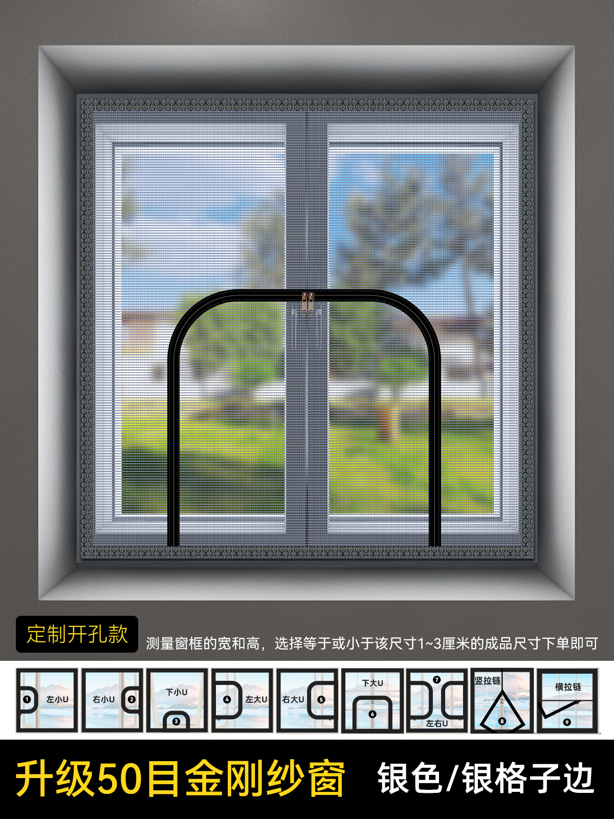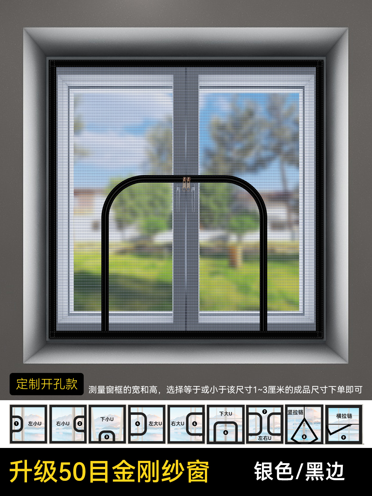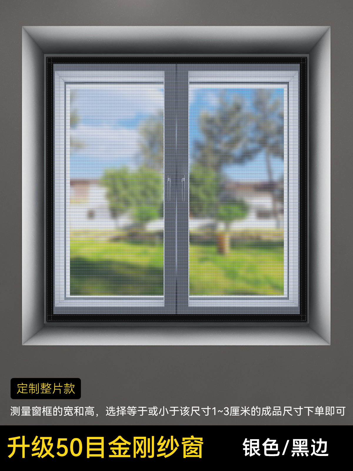 • 슬라이딩 윈도우 전용 - 맞춤형 중간 개방형 스타일(은색 암호화 다이아몬드 원사 + 검정색 가장자리)(작은 날아다니는 곤충 방지) -0x0m