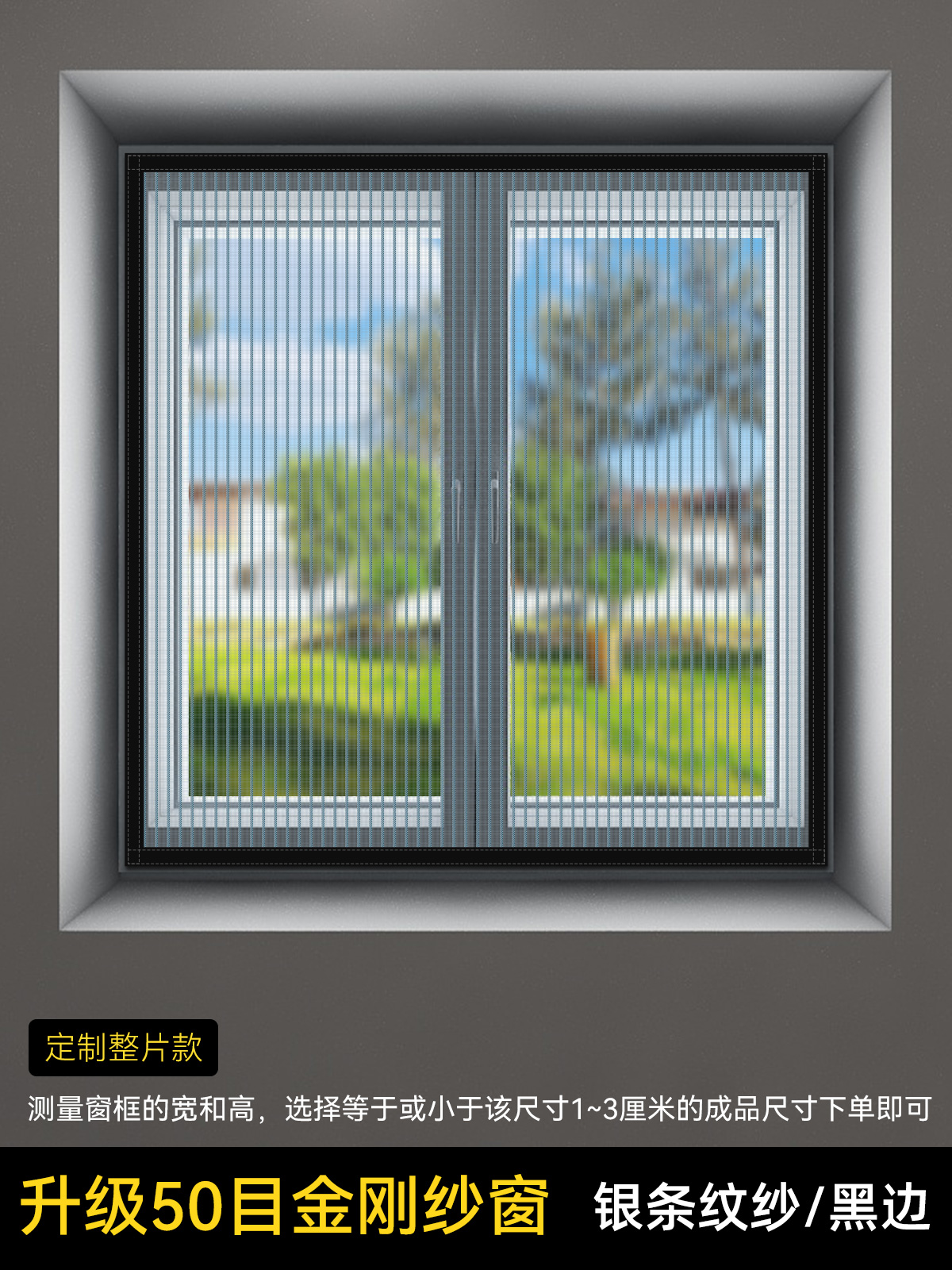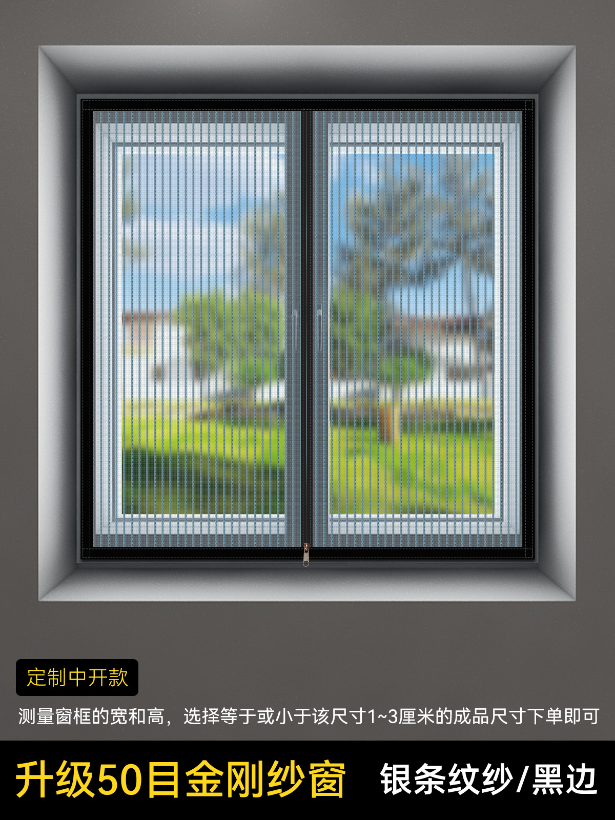 • 슬라이딩 윈도우 전용 - 맞춤형 중간 개방형 스타일(실버 스트라이프 암호화 다이아몬드 원사 + 검정색 가장자리)(작은 날아다니는 곤충 방지) - 0x0m
