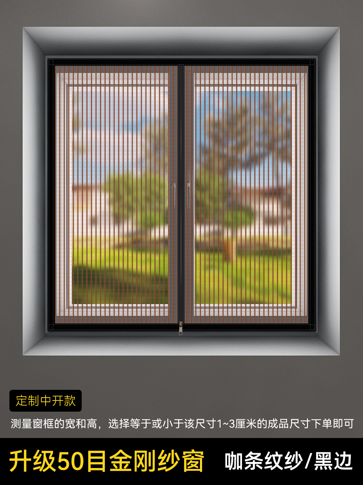 • 슬라이딩 윈도우 전용 - 맞춤형 중간 개방형 스타일(커피 줄무늬 암호화 다이아몬드 원사 + 검정색 가장자리)(작은 날아다니는 곤충 방지) - 0x0m