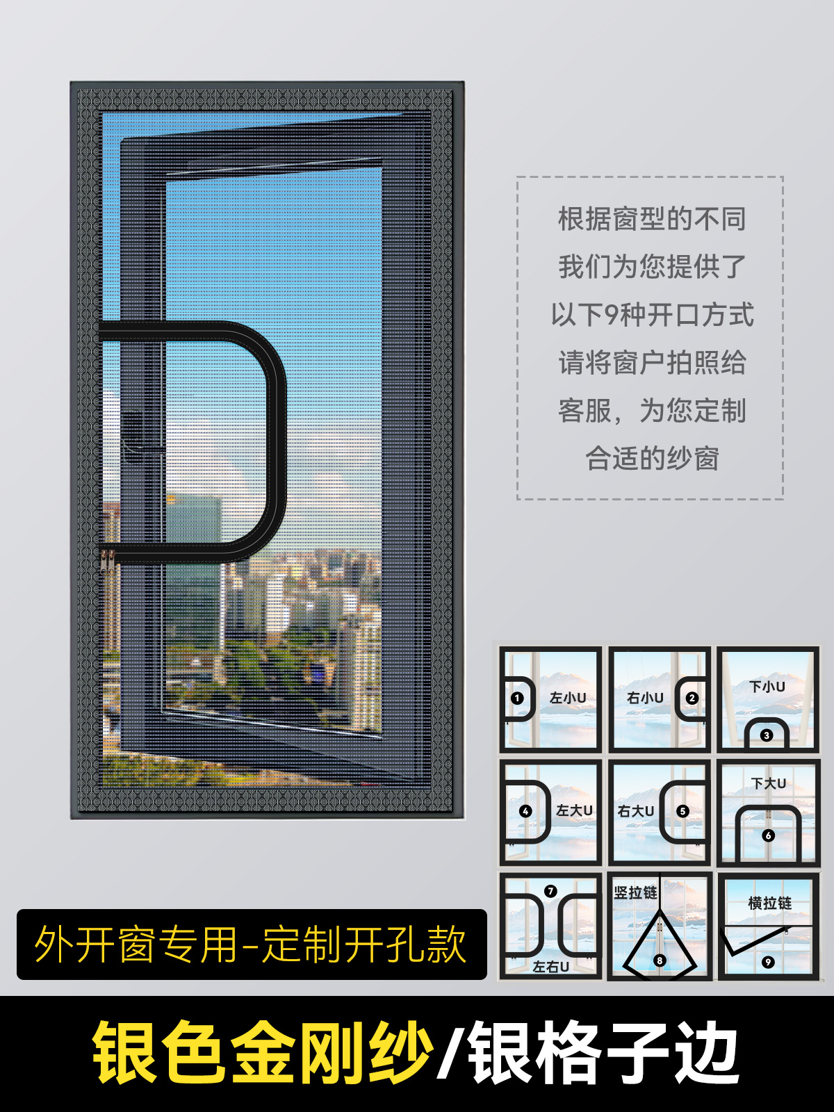 • 외부 개구부용 특수 - 개방형 모델(은색 암호화 다이아몬드 원사 + 은색 격자 무늬 가장자리)(작은 날아다니는 곤충 방지) - 0x0m