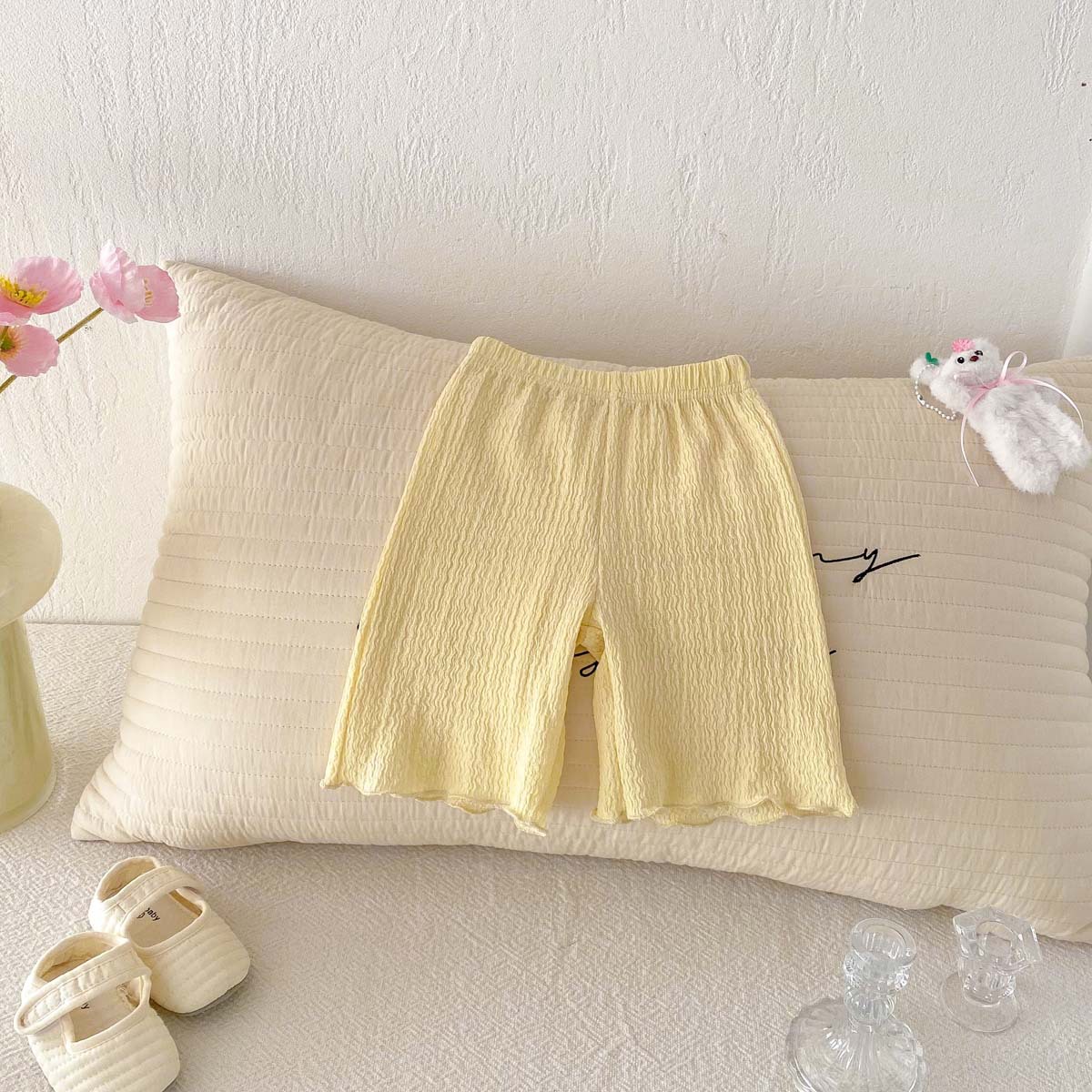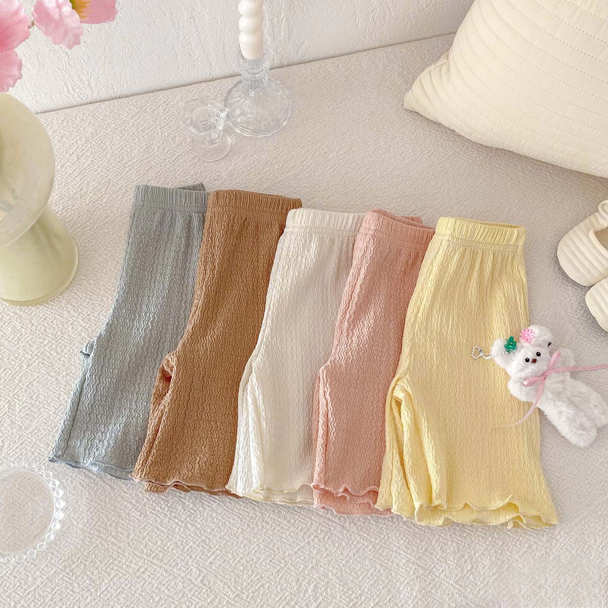 여름 한국 스타일 소녀 바지 단색 부드러운 경량 통기성 반바지 유아 캐주얼 올 매치 걸스 레깅스