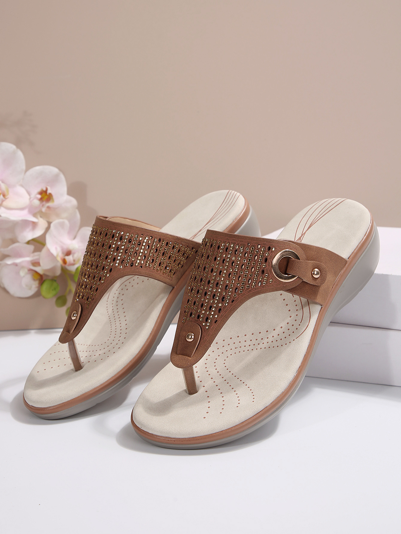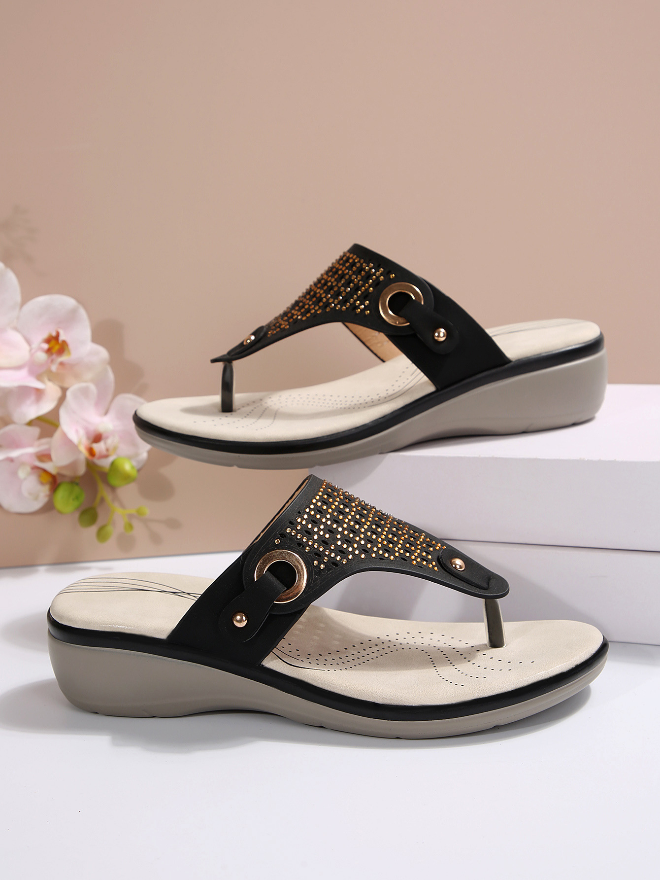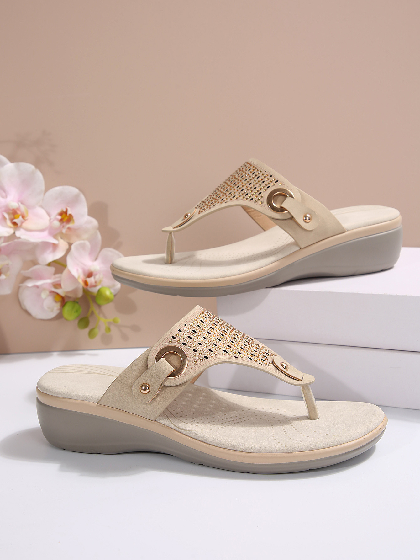 플립 온 샌들과 슬리퍼 여성 2025 여름 새로운 유럽과 미국의 대외 무역 플러스 사이즈 중공 모조 다이아몬드 웨지 샌들과 슬리퍼 여성 도매