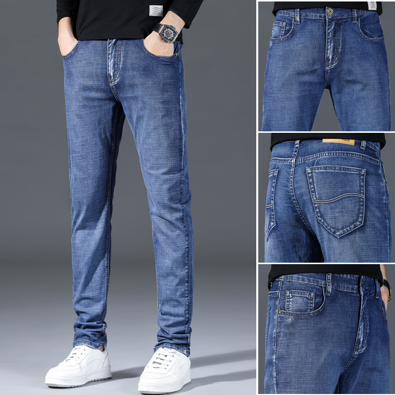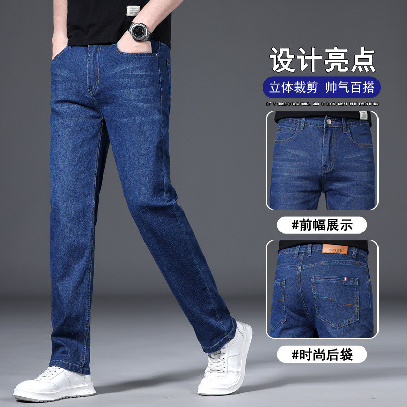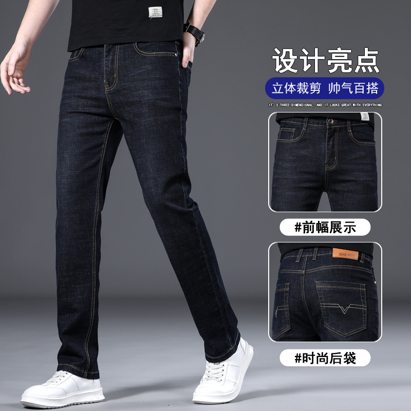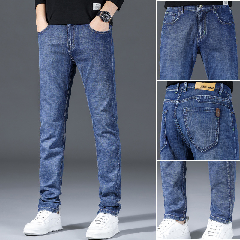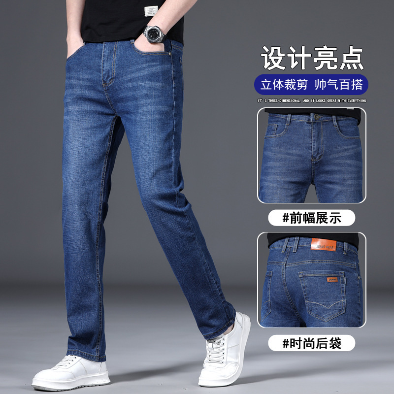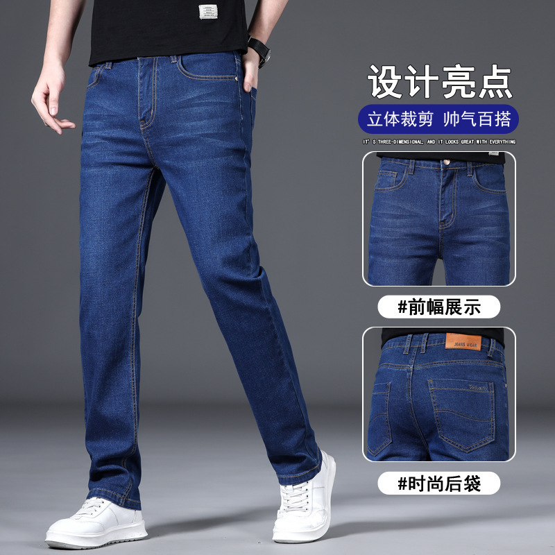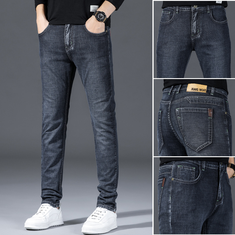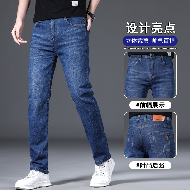 청소년 청바지 남성 슬림 스트레이트 팬츠 2025 봄 가을 신작 남성용 중간 허리 스트레치 바지스토어 가기