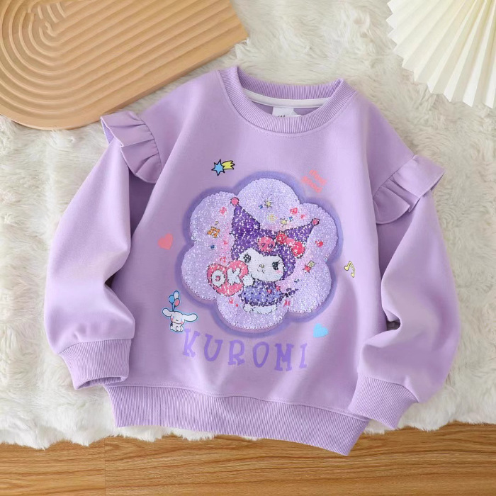 소녀 가을 어린이 스웨트 셔츠 쿨로 미, 유구이 개 만화로 변신 영화 색상 변경 라운드 넥