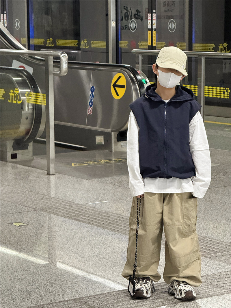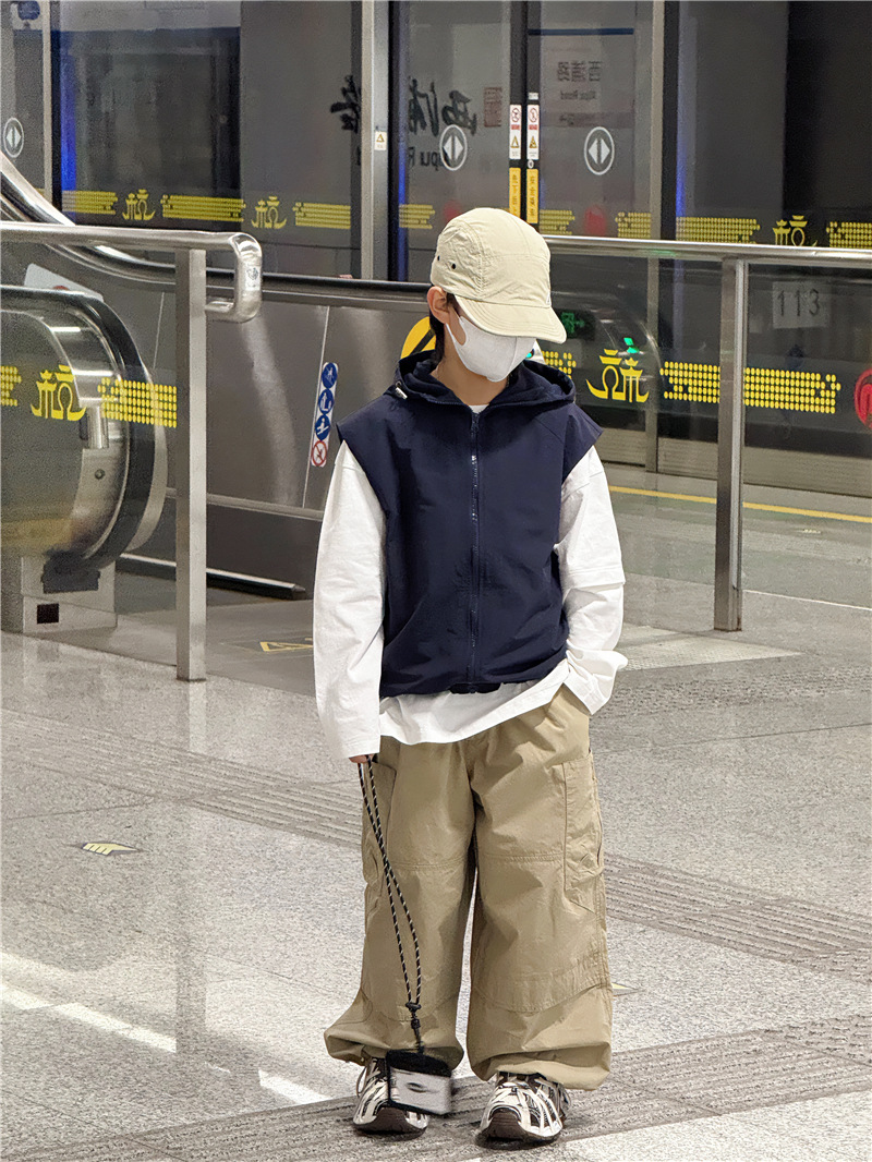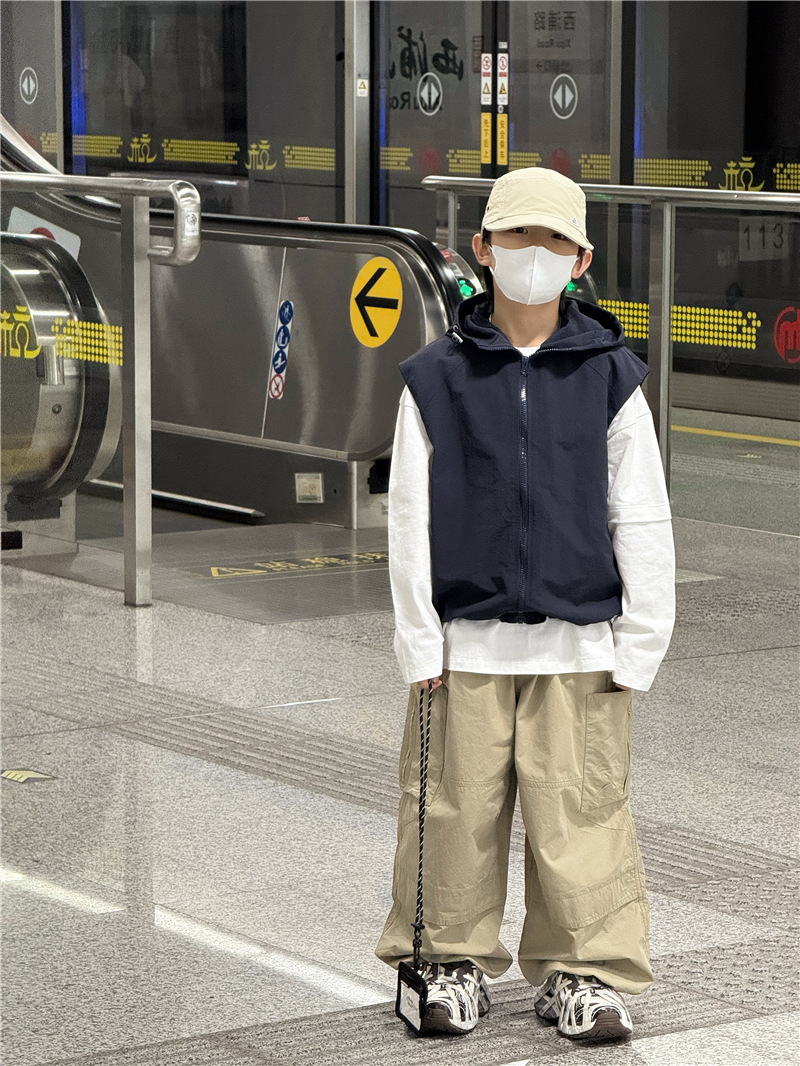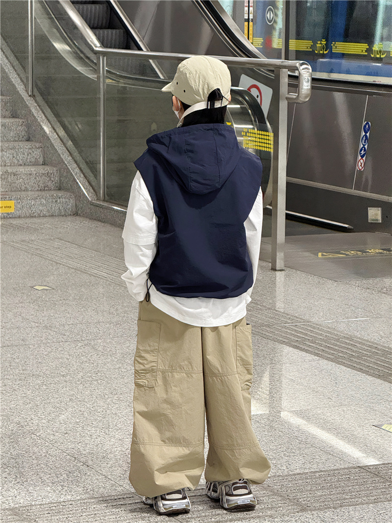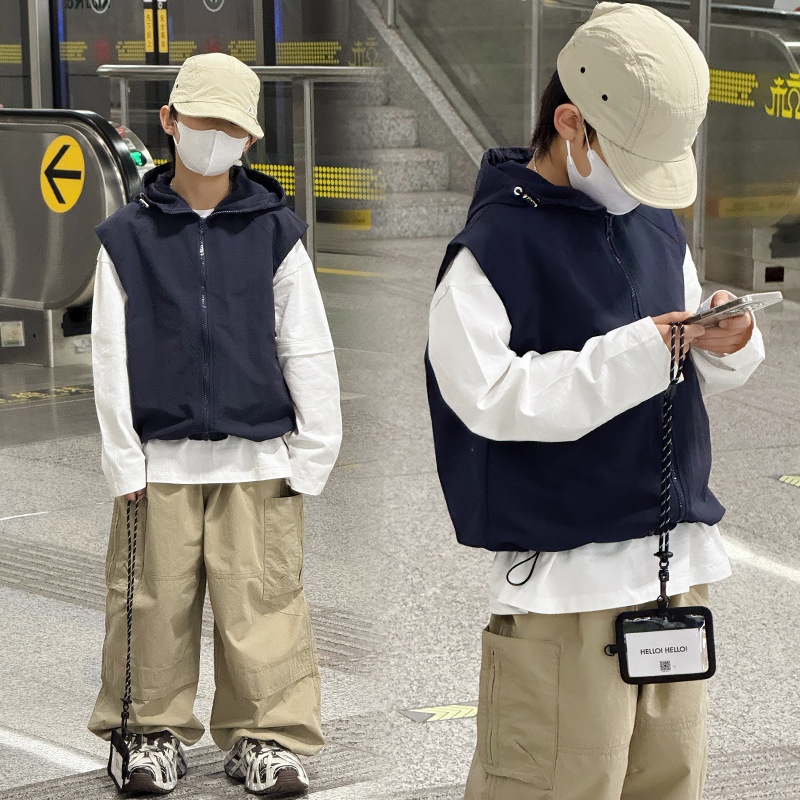 Baoduo 아동복 소년 재킷 봄, 가을 2025 새로운 스타일 조끼 조끼 어린이 및 중년 아동용 후드 100-170 상의