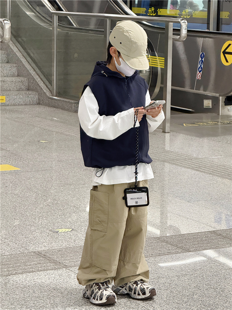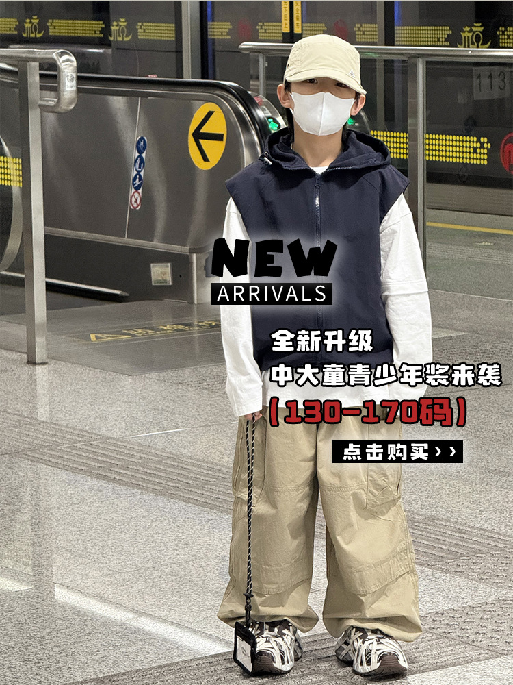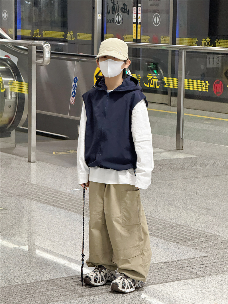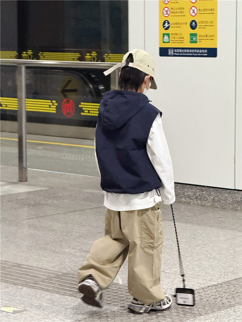 Baoduo 아동복 소년 재킷 봄, 가을 2025 새로운 스타일 조끼 조끼 어린이 및 중년 아동용 후드 100-170 상의