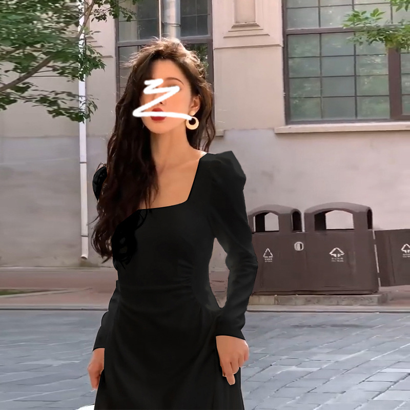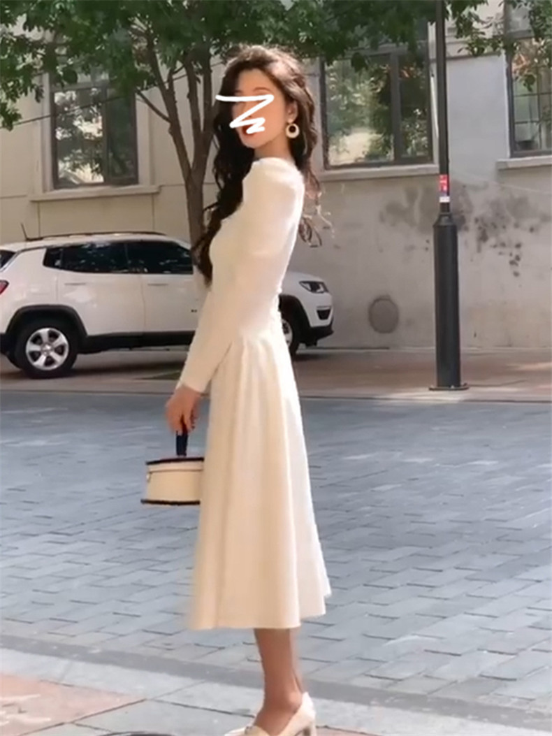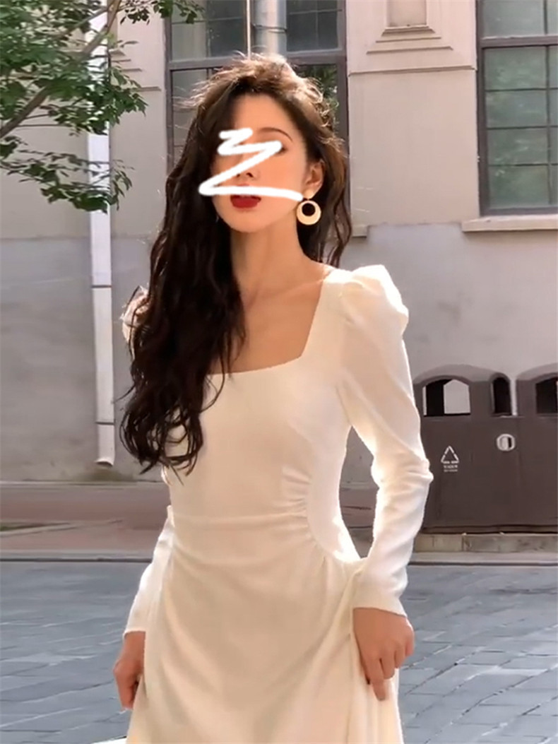 프랑스 화이트 스퀘어 칼라 원피스 여자 A 라인 2025 년 이른 봄 새로운 Pleated 허리 슬리밍 젠틀 롱 원피스 올 매치스토어 가기