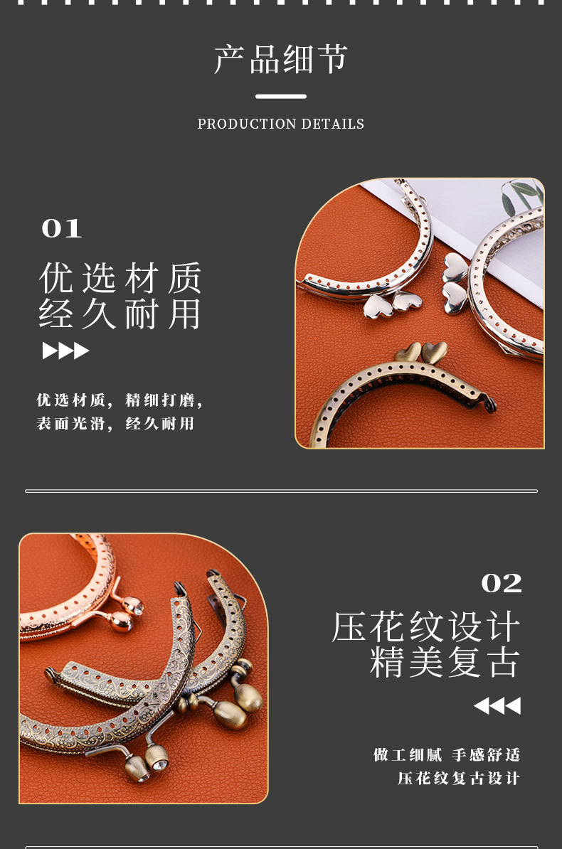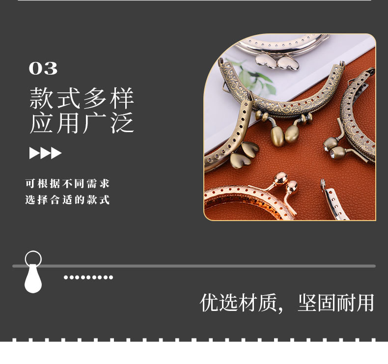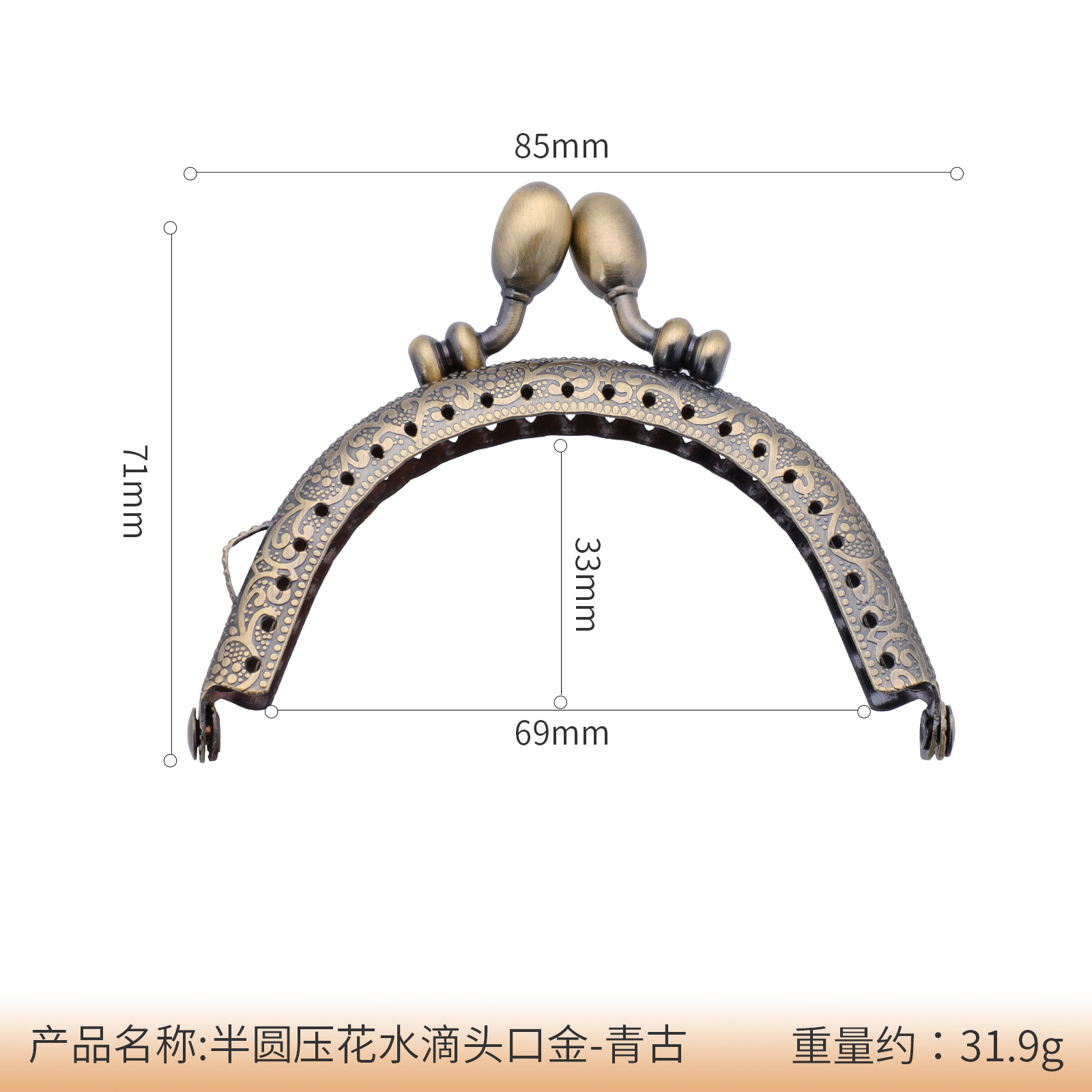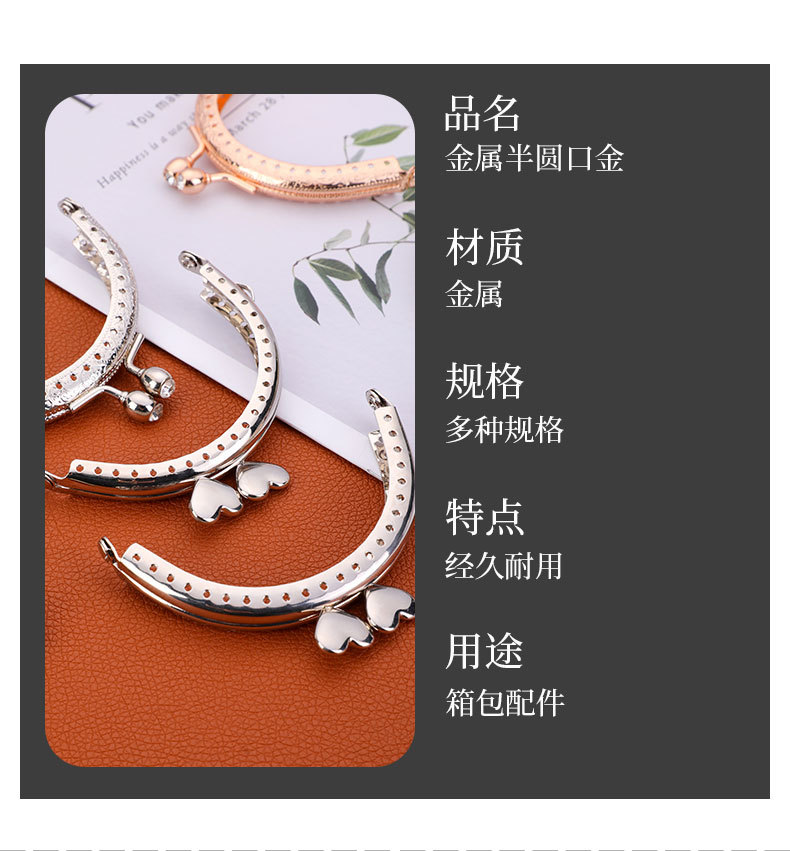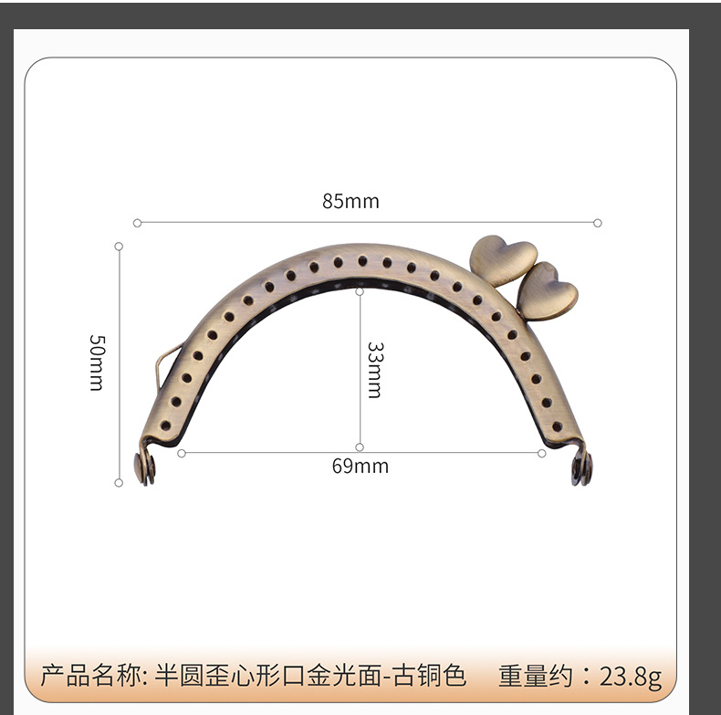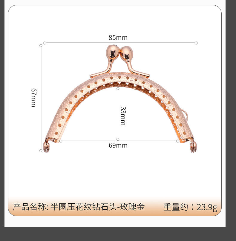 8.5cm 반원 엠보싱 다이아몬드 머리 사랑 머리 입 금화 지갑 가방 버클 하드웨어 수하물 액세서리