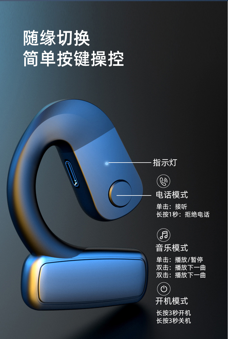 클래식 폭발 OWS 단일 귀 무선 비즈니스 블루투스 헤드셋 귀 매달린 충전 디지털 디스플레이 긴 내구성