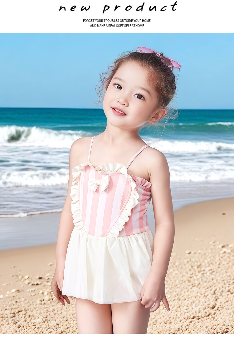 어린이 수영복 여아 2026년 신상 여아 멜빵 거즈 스커트 귀엽고 사랑스러운 여아 온천 원피스 수영복스토어 가기