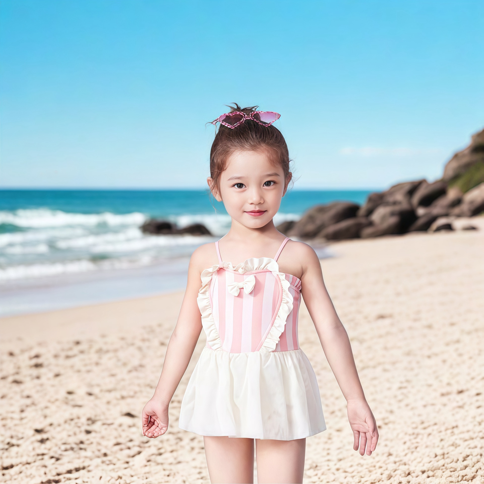 어린이 수영복 여아 2026년 신상 여아 멜빵 거즈 스커트 귀엽고 사랑스러운 여아 온천 원피스 수영복