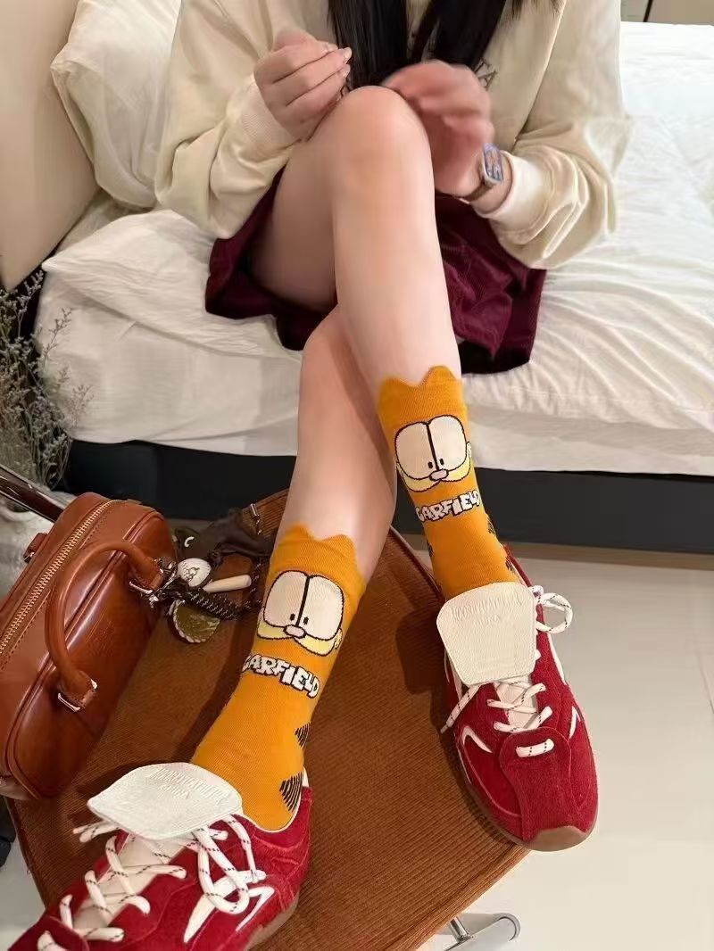 "Heart Garfield" 일본 귀여운 Carto 양말 어린이 소녀 중간 스타킹 가을 및 겨울 스타킹 필 스타킹 면화 스타킹스토어 가기