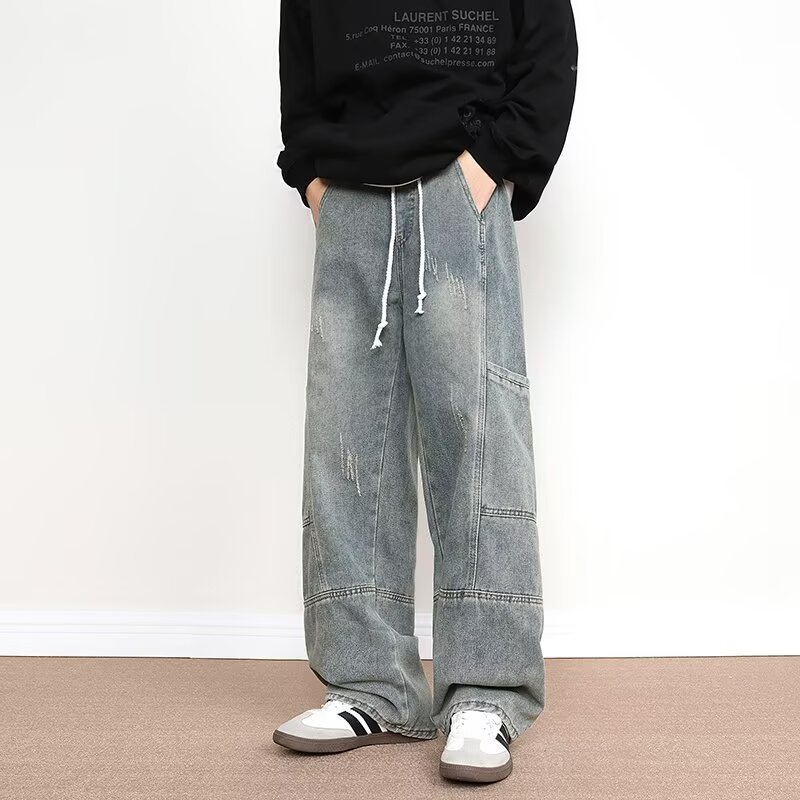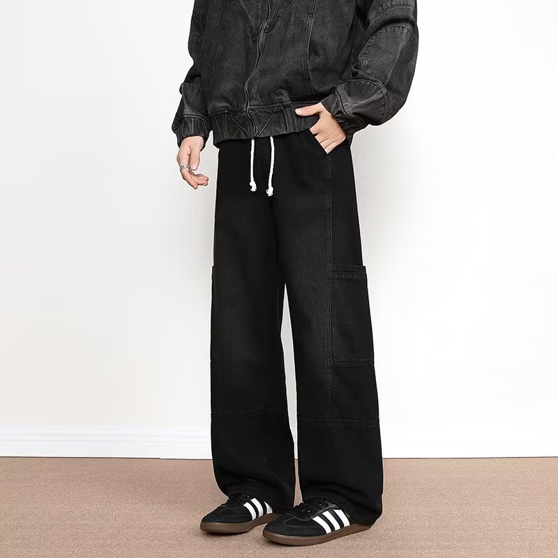 국경을 넘나 드는 멀티 포켓 청바지 남성 봄과 가을 아메리칸 스타일 하이 스트리트 인 마체 테 팬츠 루즈 와이드 레그 팬츠스토어 가기