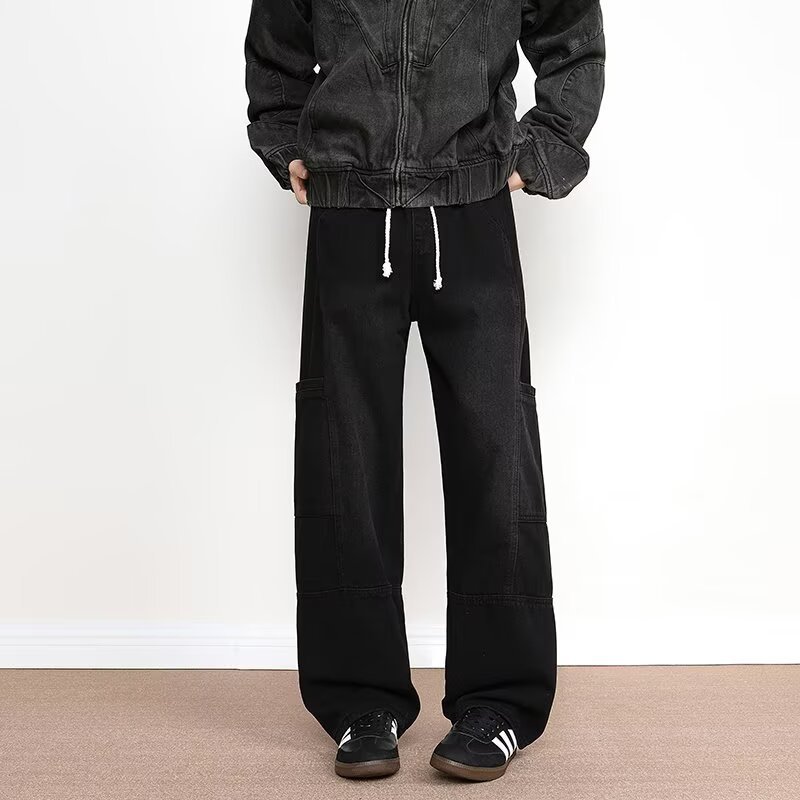 국경을 넘나 드는 멀티 포켓 청바지 남성 봄과 가을 아메리칸 스타일 하이 스트리트 인 마체 테 팬츠 루즈 와이드 레그 팬츠