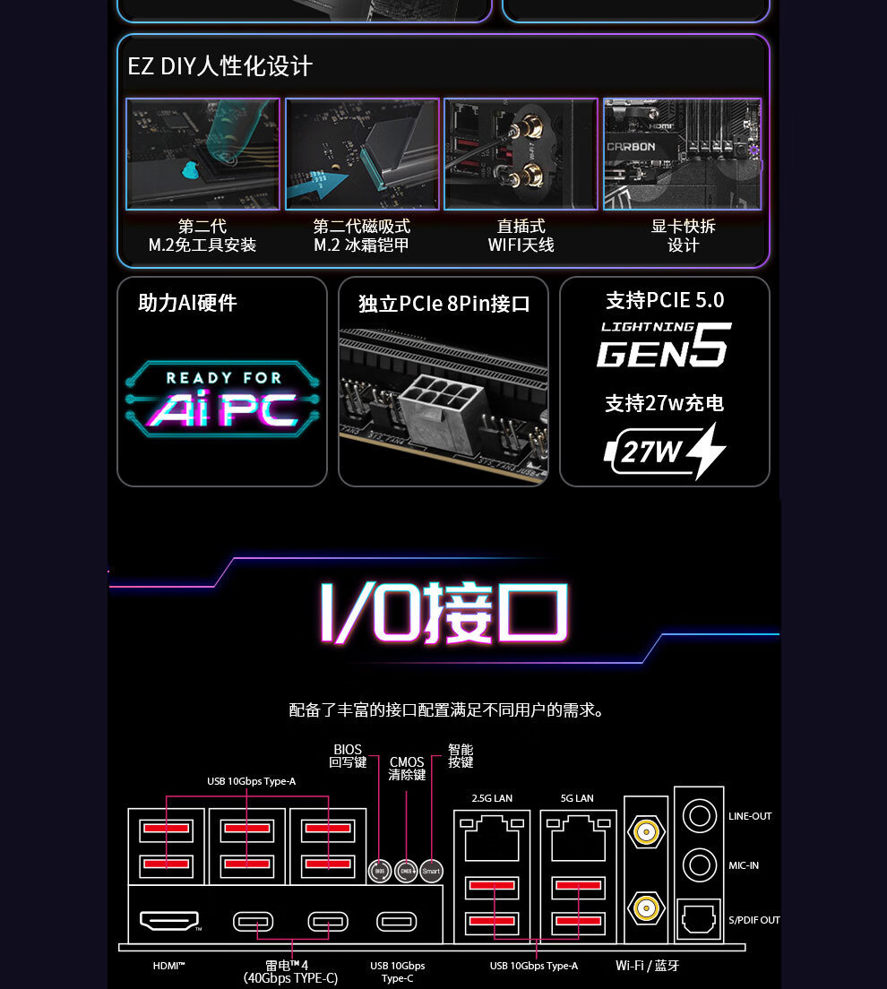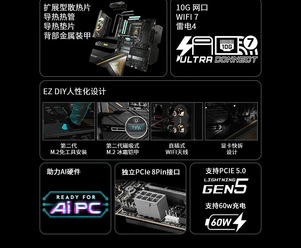Z890 디아블로 토마 호크 마더 보드 지원 CPU 285K/265K/265KF/245KF