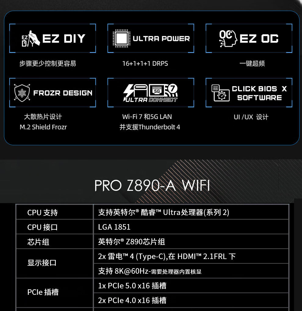 Z890 디아블로 토마 호크 마더 보드 지원 CPU 285K/265K/265KF/245KF스토어 가기
