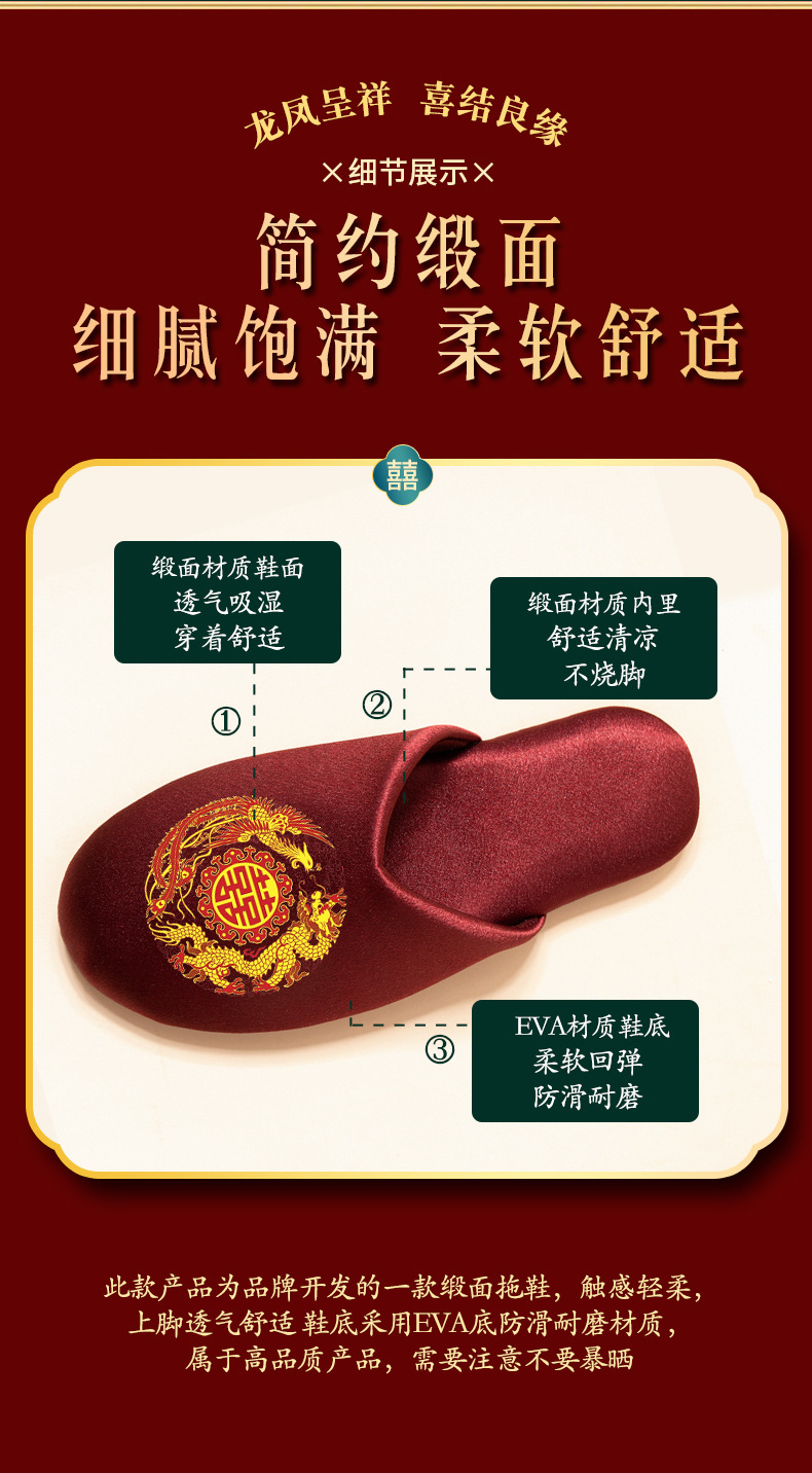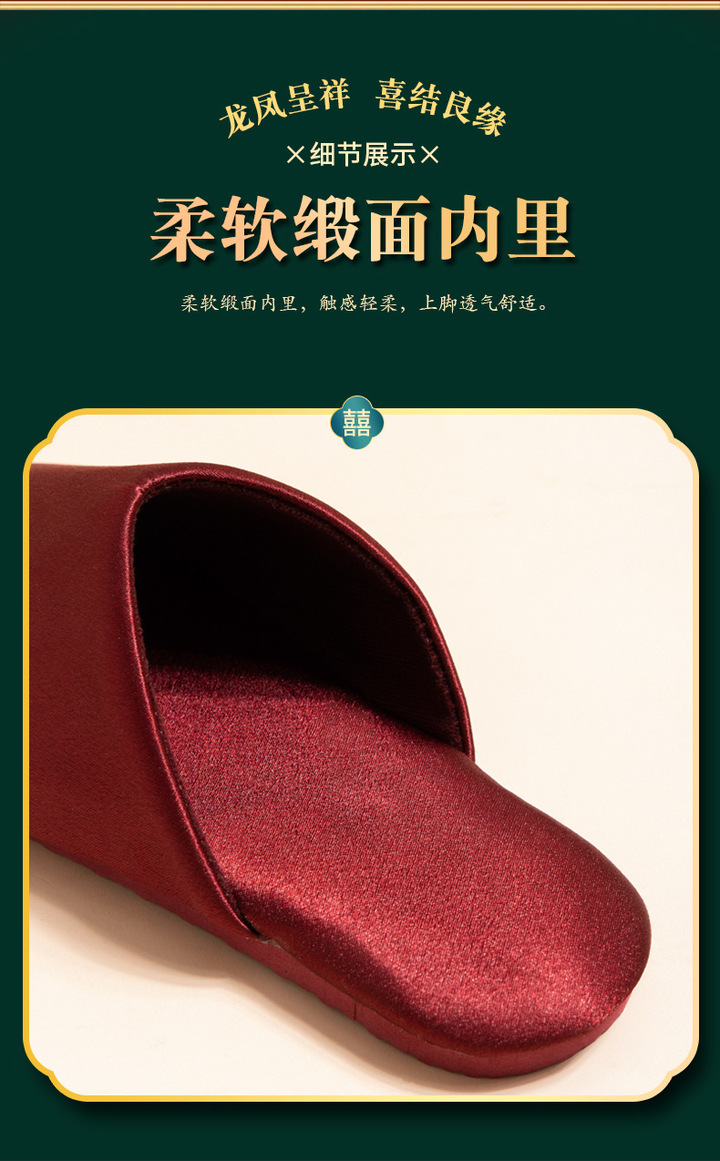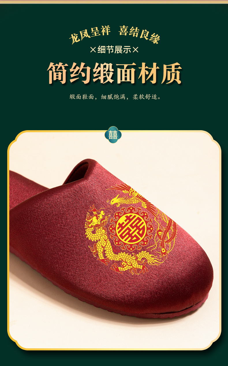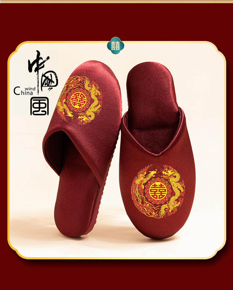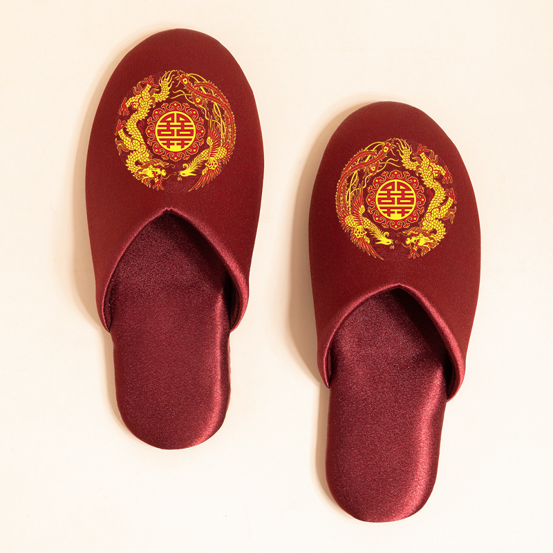 신부 버건디 결혼식 축하 신부와 신랑 웨딩 슬리퍼 여성을위한 새로운 용과 피닉스 더블 행복 웨딩 슬리퍼