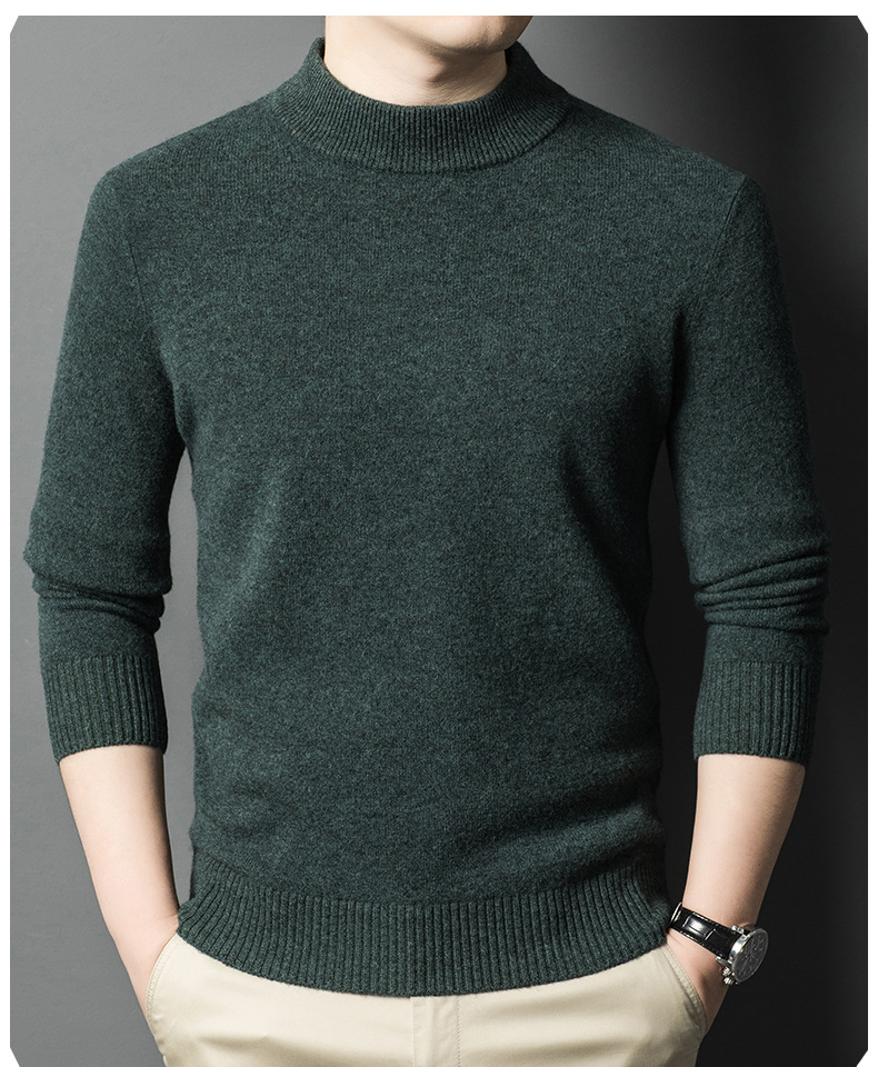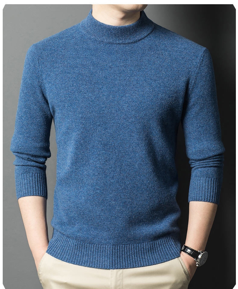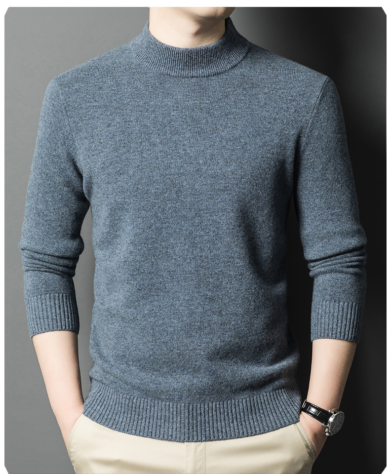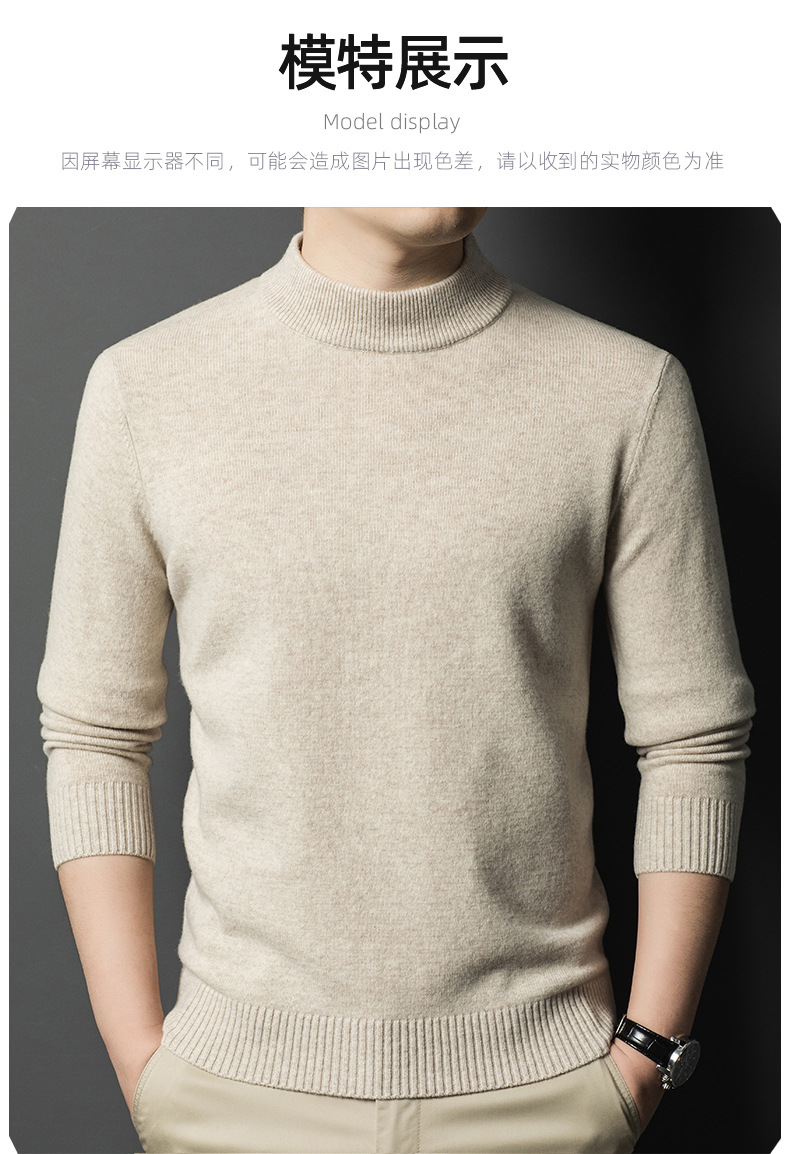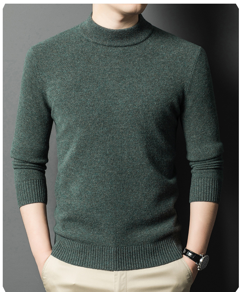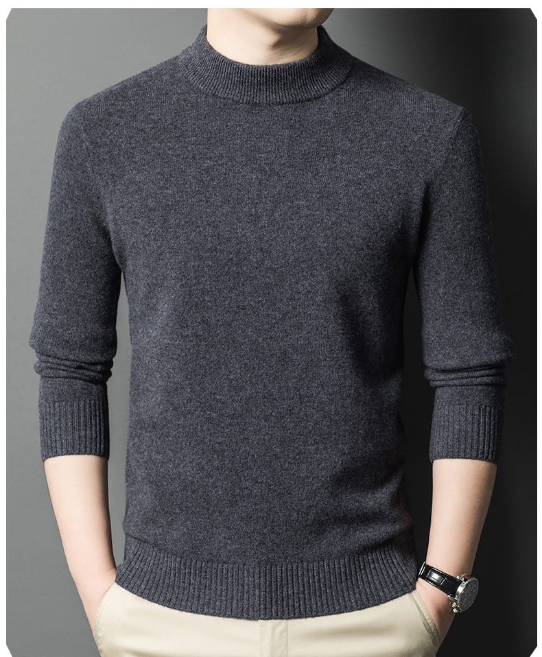 남성용 스웨터 새로운 헤비급 450g 순수 울 스웨터 남성용 하프 터틀넥 두꺼운 솔리드 컬러 따뜻한 캐주얼 스웨터 남성용스토어 가기
