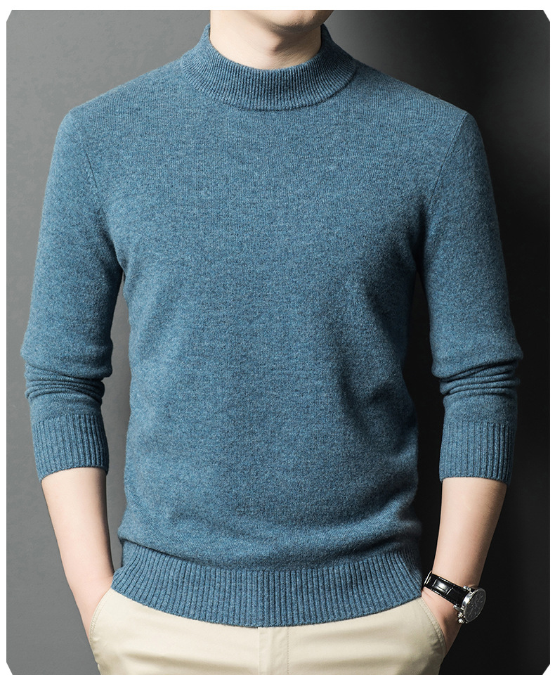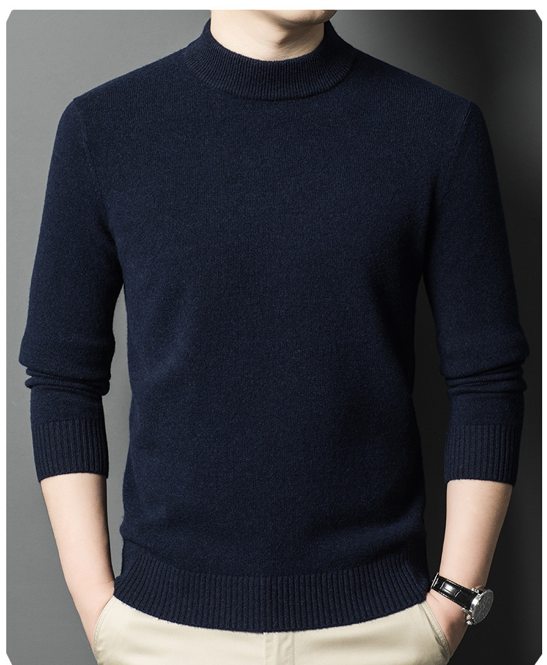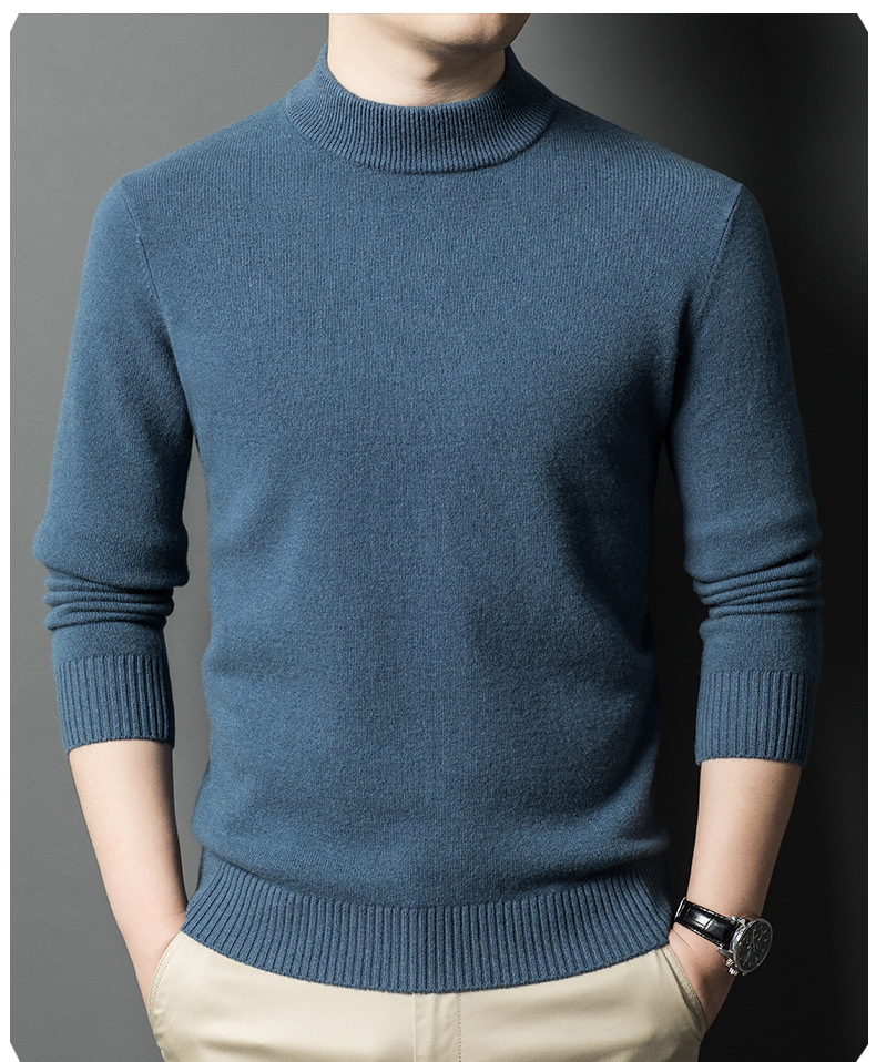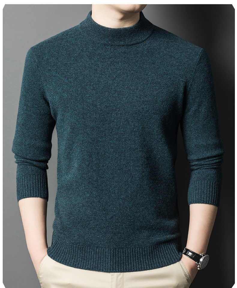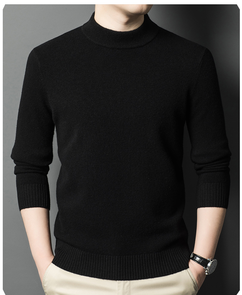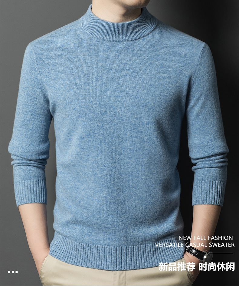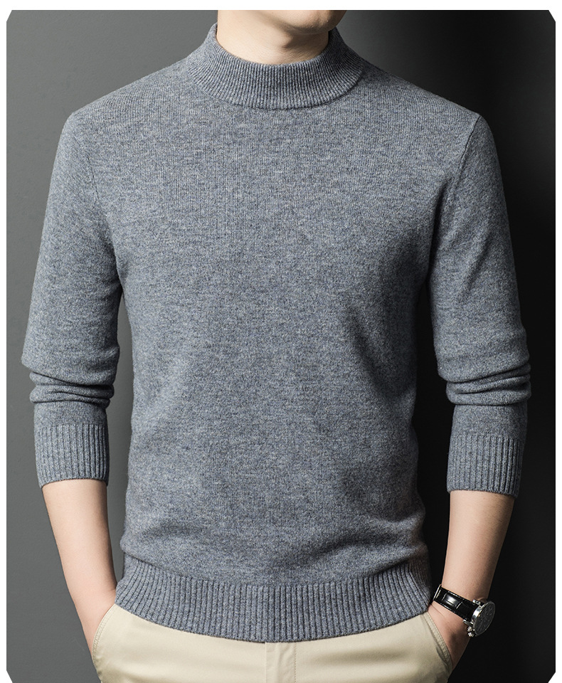 남성용 스웨터 새로운 헤비급 450g 순수 울 스웨터 남성용 하프 터틀넥 두꺼운 솔리드 컬러 따뜻한 캐주얼 스웨터 남성용스토어 가기