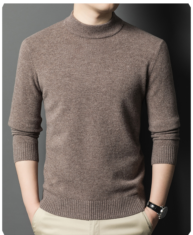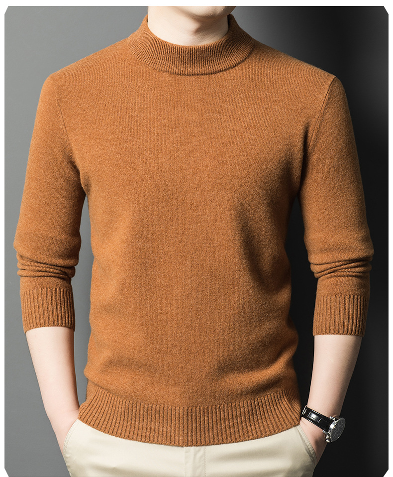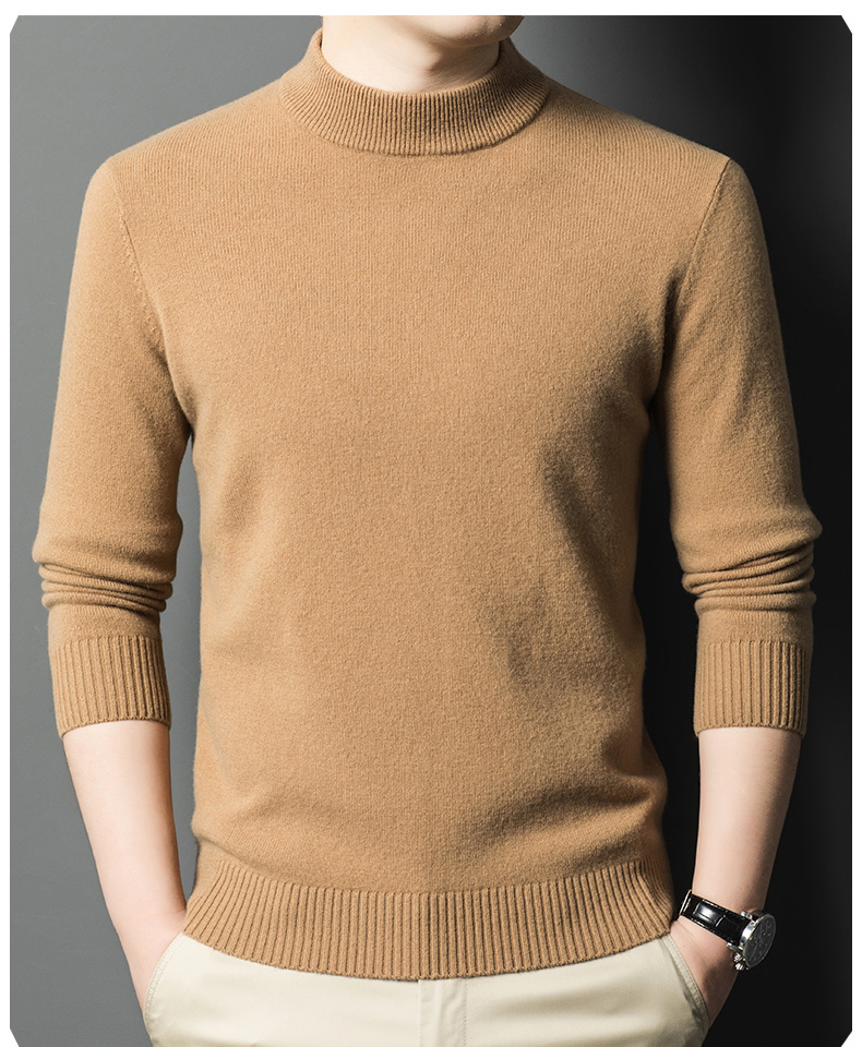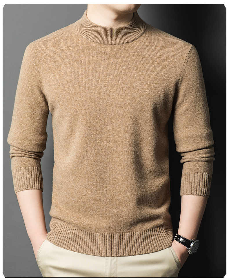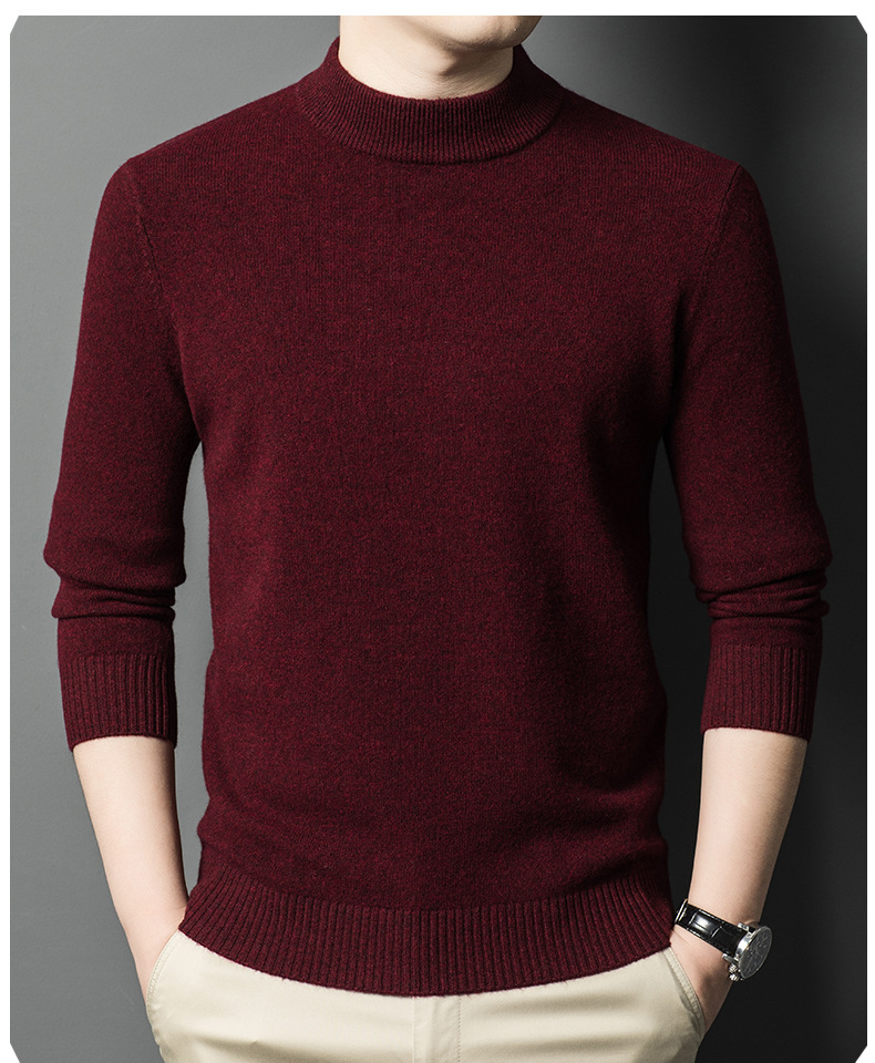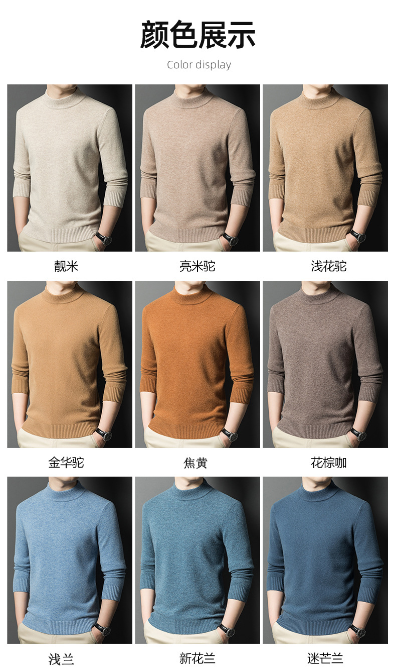 남성용 스웨터 새로운 헤비급 450g 순수 울 스웨터 남성용 하프 터틀넥 두꺼운 솔리드 컬러 따뜻한 캐주얼 스웨터 남성용스토어 가기