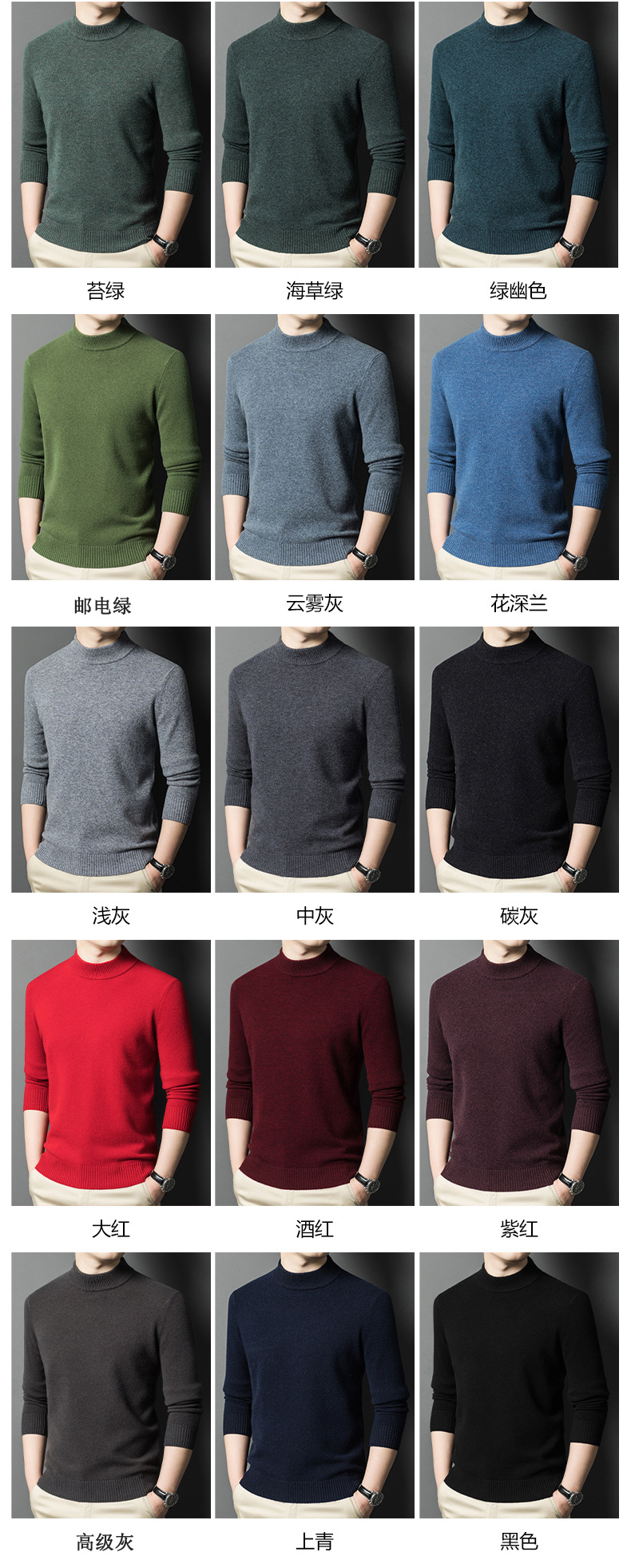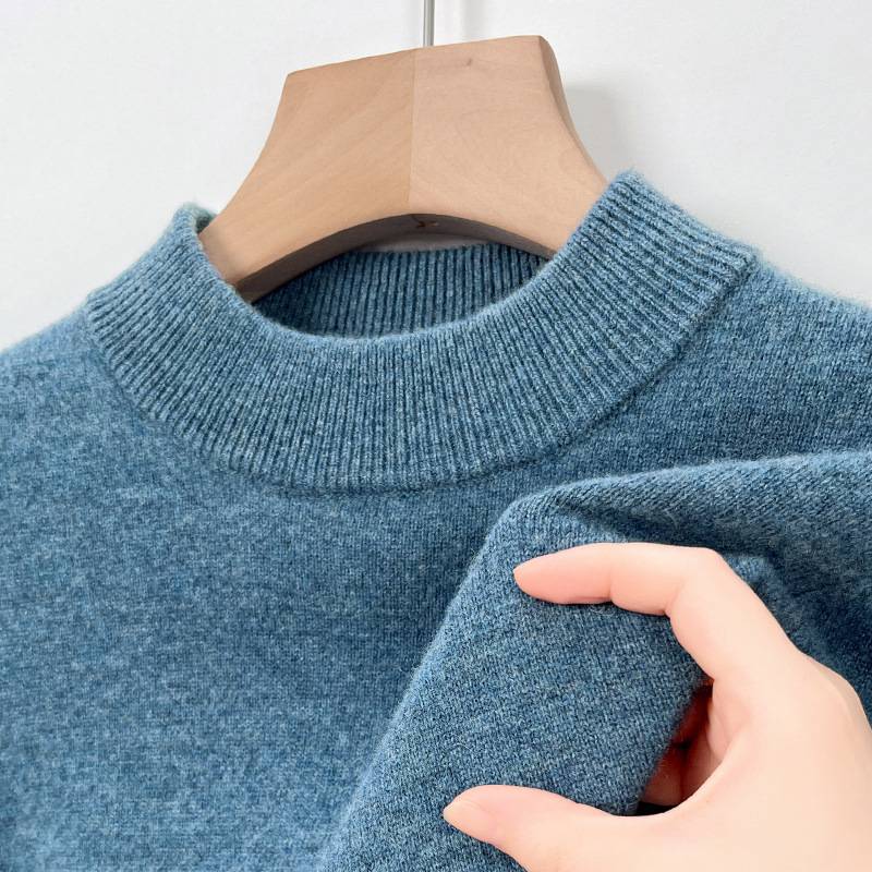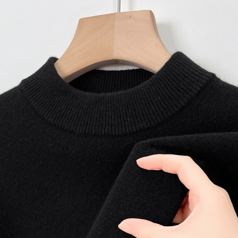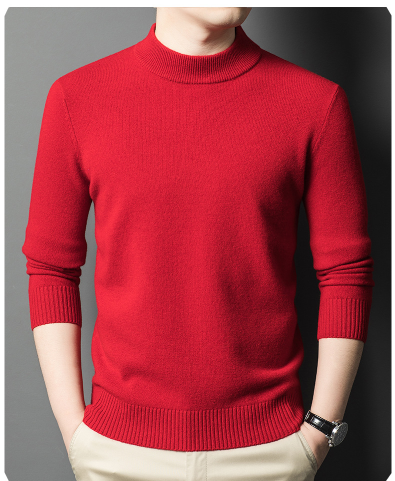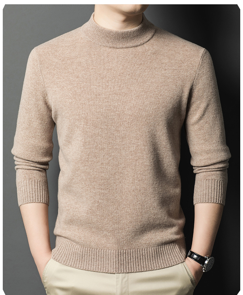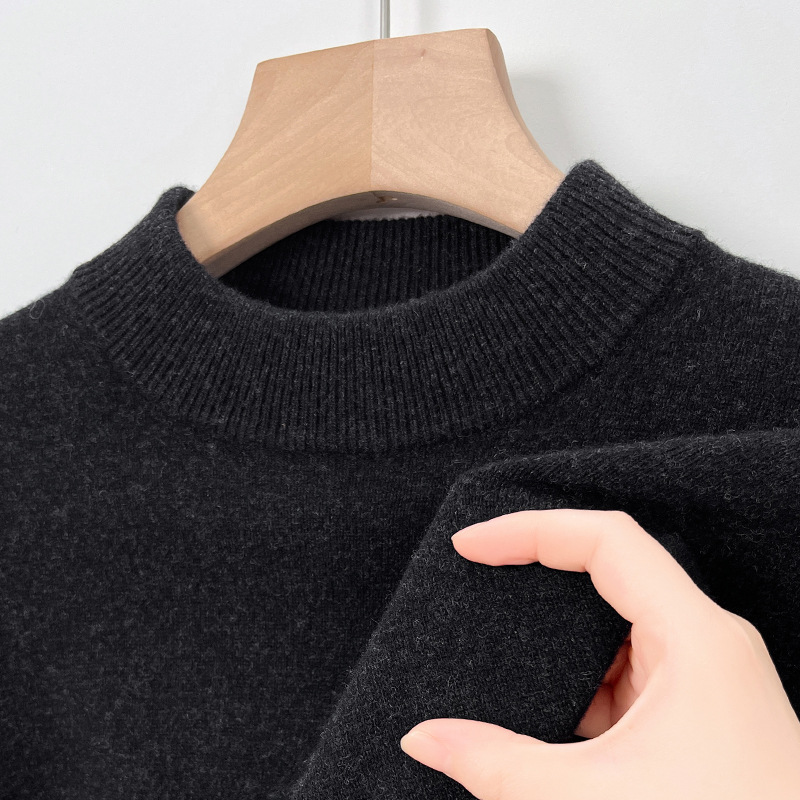 남성용 스웨터 새로운 헤비급 450g 순수 울 스웨터 남성용 하프 터틀넥 두꺼운 솔리드 컬러 따뜻한 캐주얼 스웨터 남성용스토어 가기