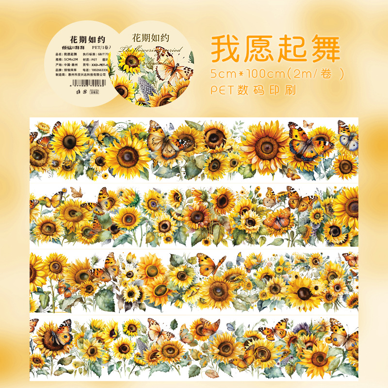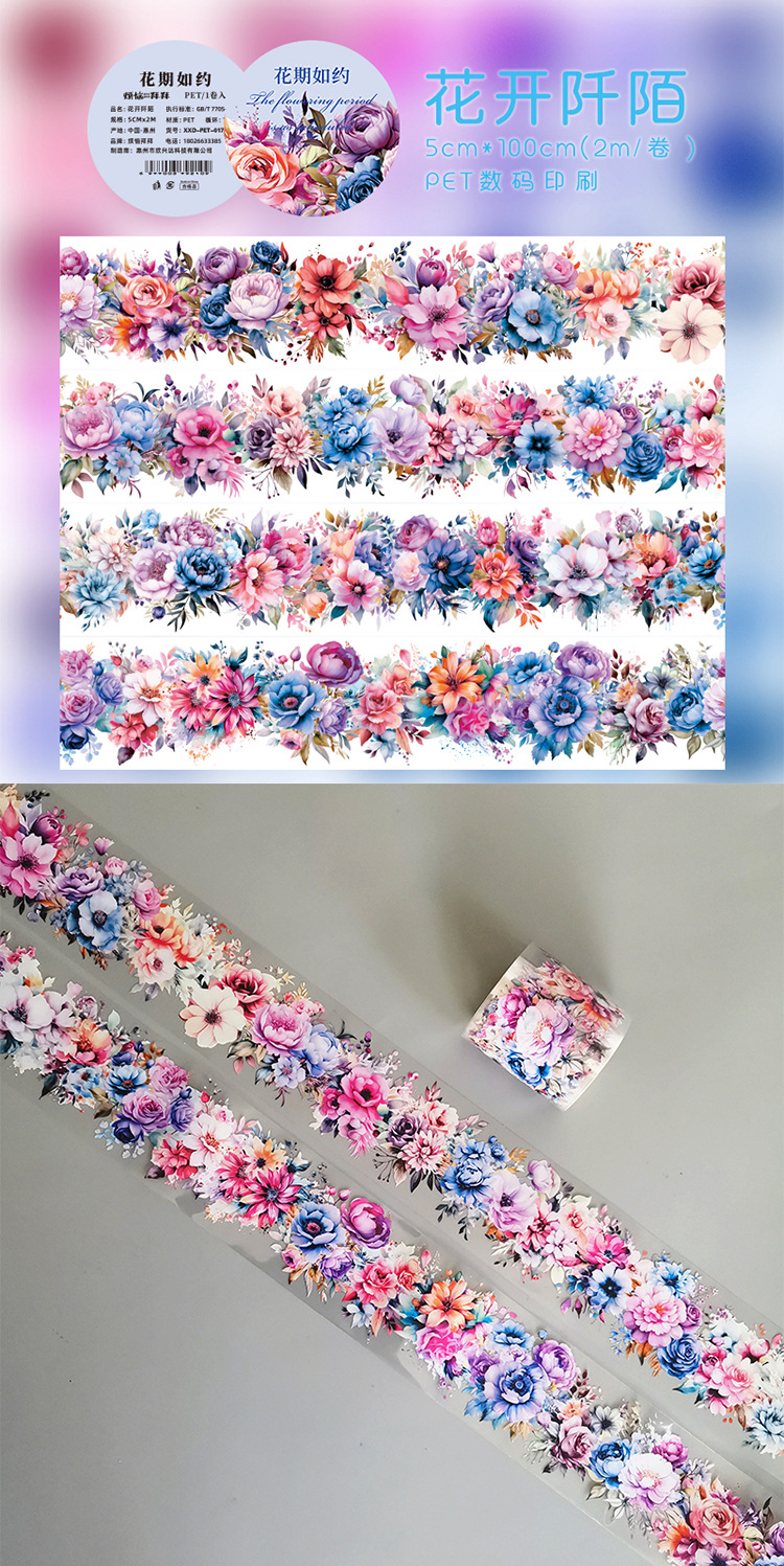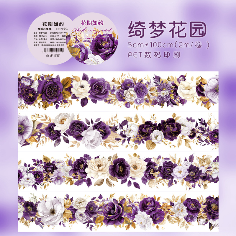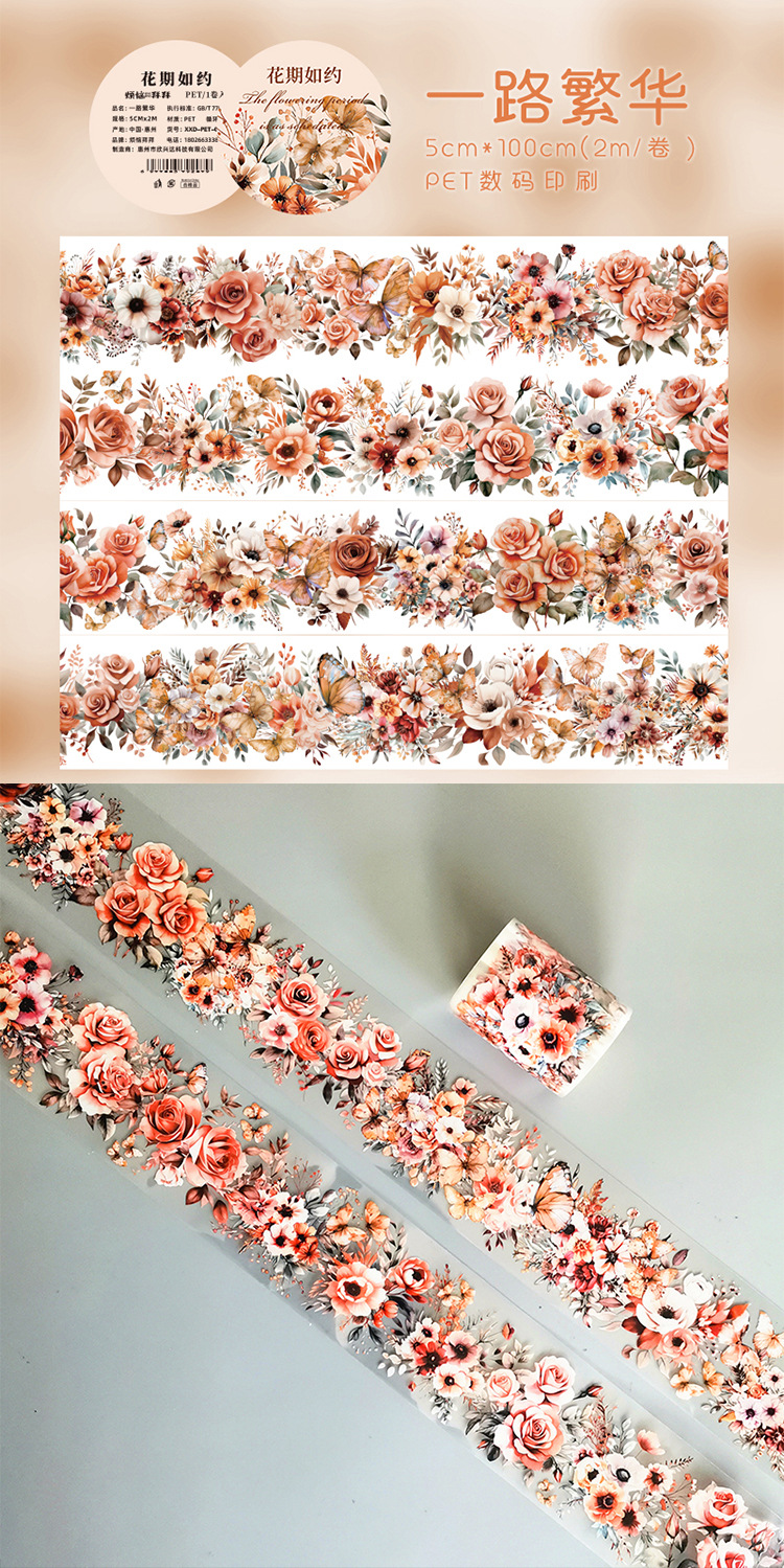 애완 동물 꽃 테이프 손 계정 구아 카드 장식 재료 예술적 꽃 테두리 풍경 스티커 DIY 필름 손 계정스토어 가기