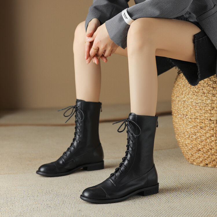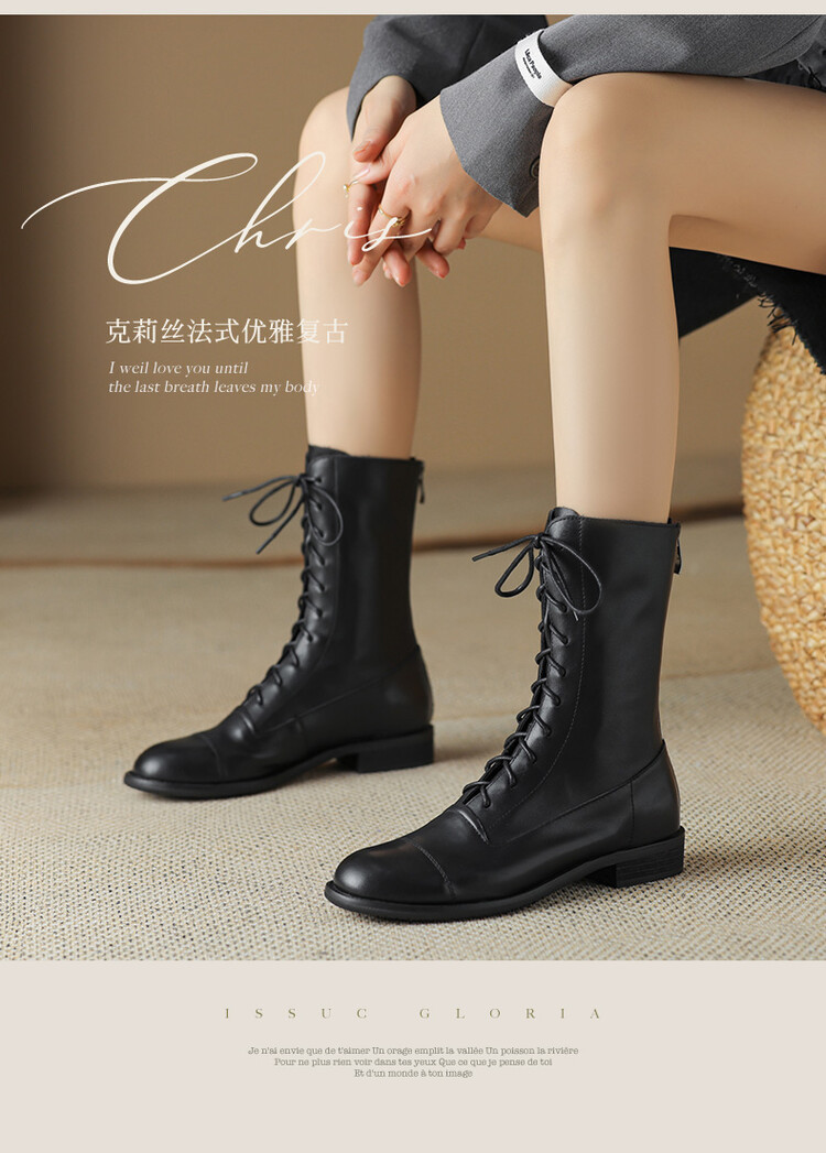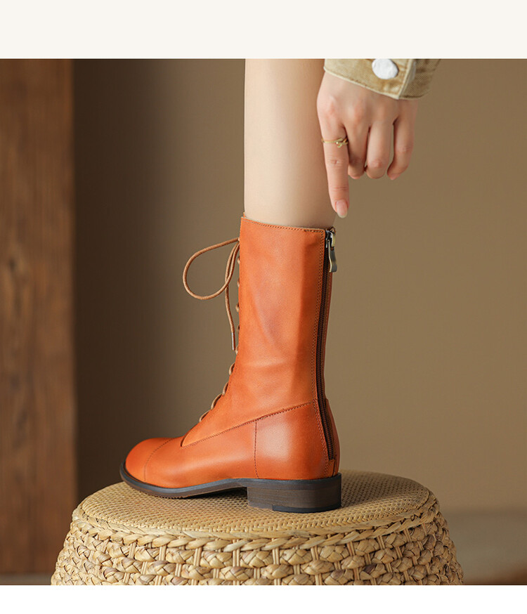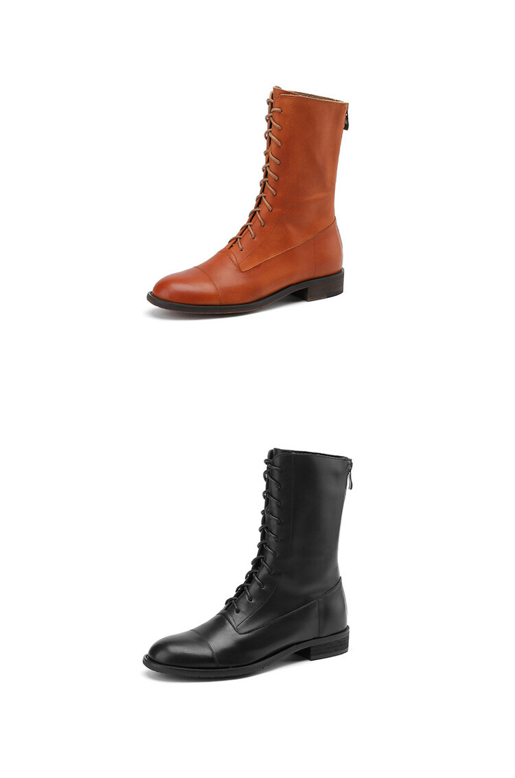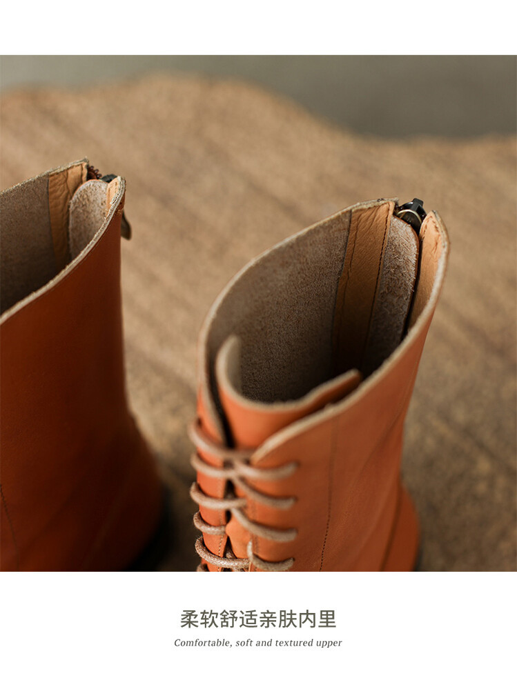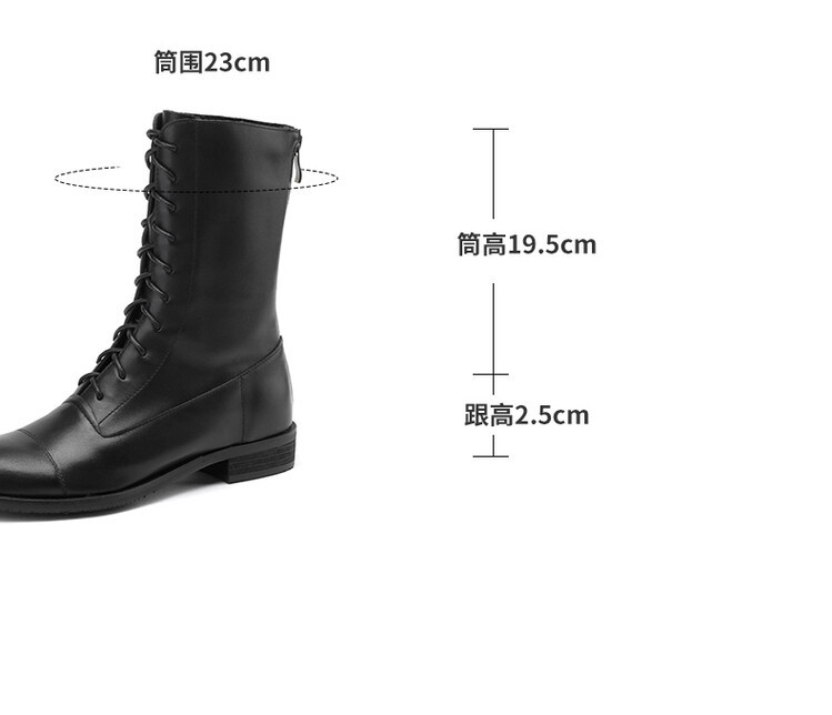 Cowhide 짧은 부츠 여성 봄 및 가을 싱글 부츠 플랫 영어 스타일 레이스 업 마틴 부츠 2025 새로운 가죽 지퍼 로우 힐