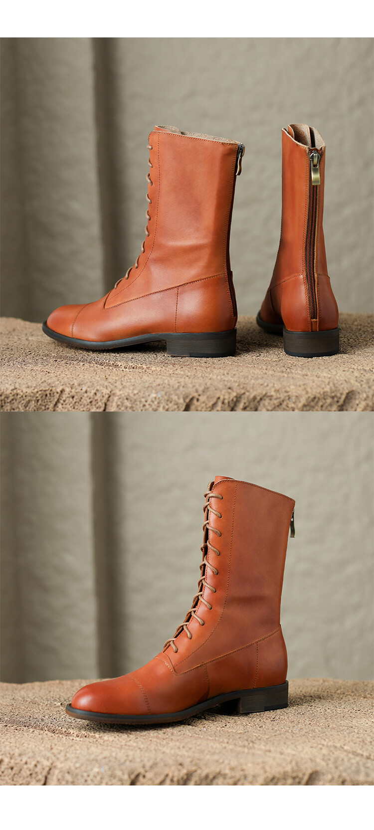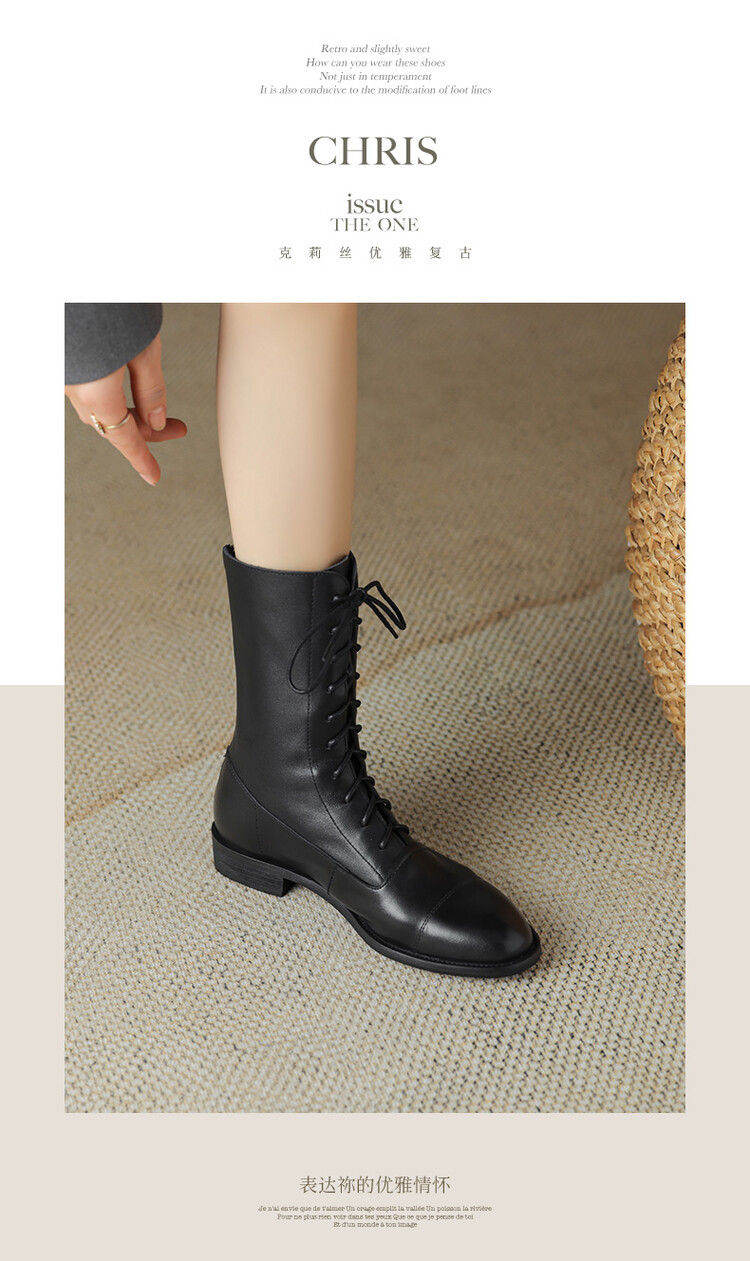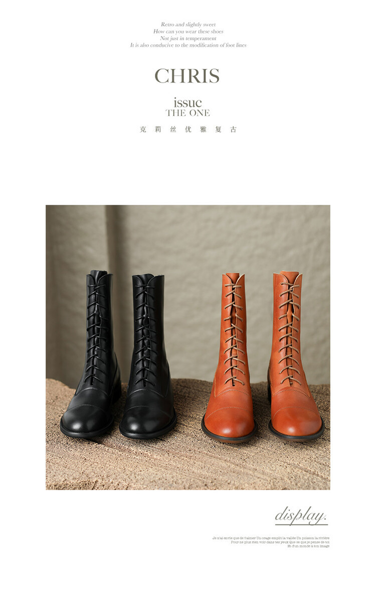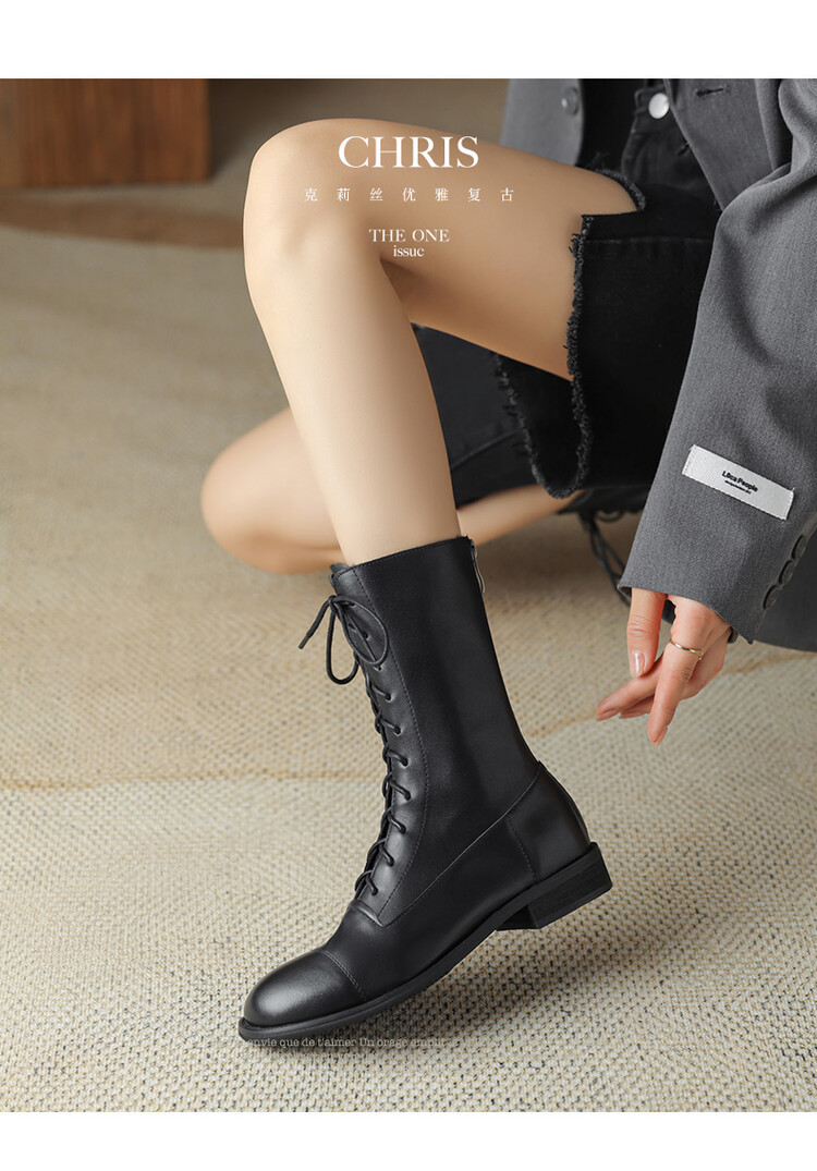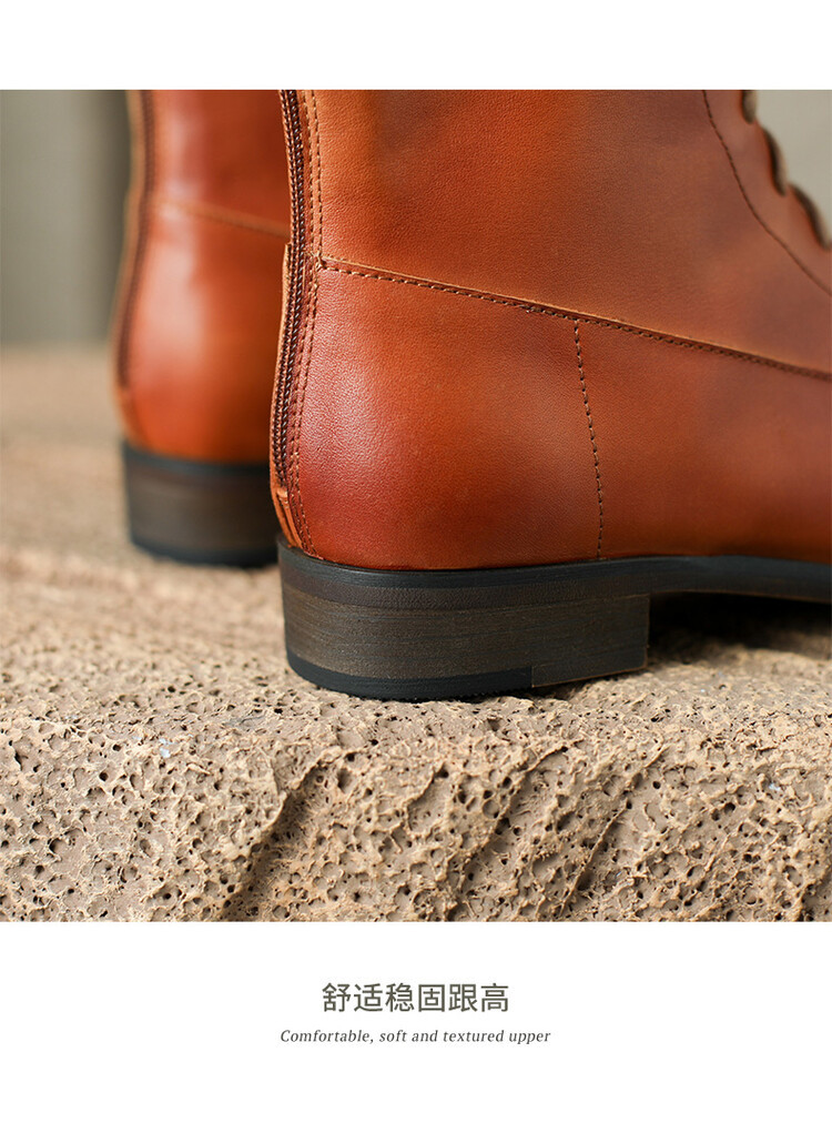 Cowhide 짧은 부츠 여성 봄 및 가을 싱글 부츠 플랫 영어 스타일 레이스 업 마틴 부츠 2025 새로운 가죽 지퍼 로우 힐스토어 가기