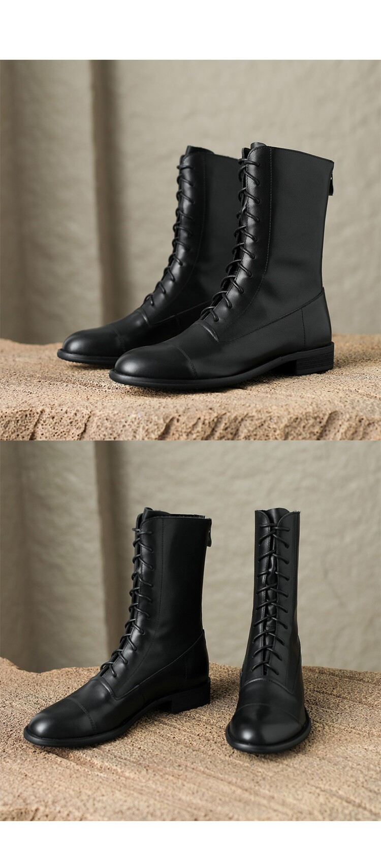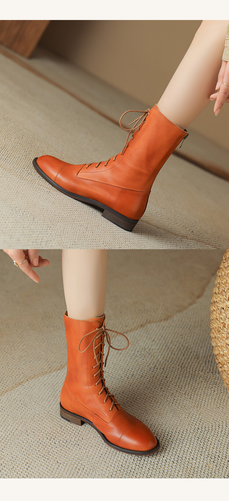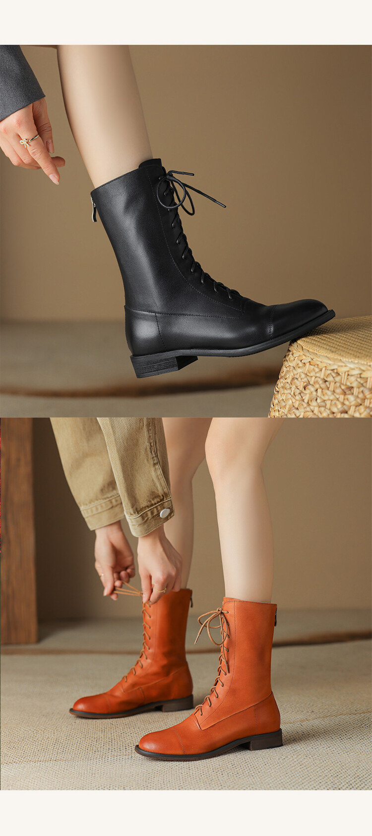 Cowhide 짧은 부츠 여성 봄 및 가을 싱글 부츠 플랫 영어 스타일 레이스 업 마틴 부츠 2025 새로운 가죽 지퍼 로우 힐스토어 가기