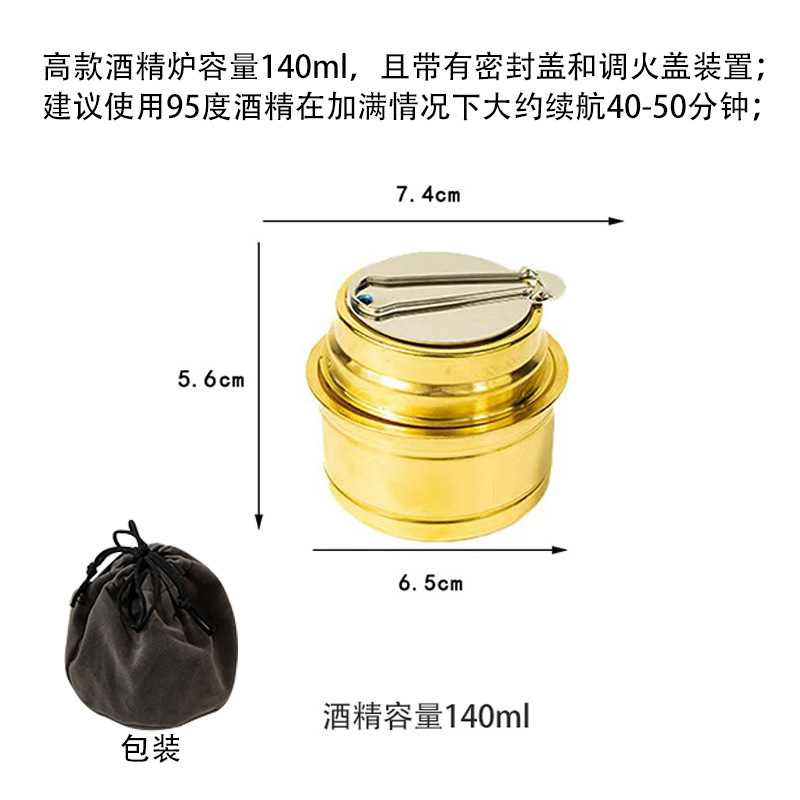 • 140ML 황동 알코올 버너 + 업그레이드된 휴대용 클러스터 버너 + 보관 가방