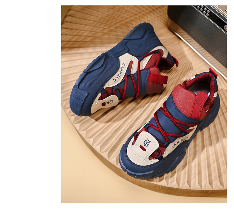 트렌디 한 남성 신발 봄 2025 새로운 캐주얼 운동화 겨울 남성 가죽 색상과 두꺼운 밑창 증가 된 아빠 신발스토어 가기