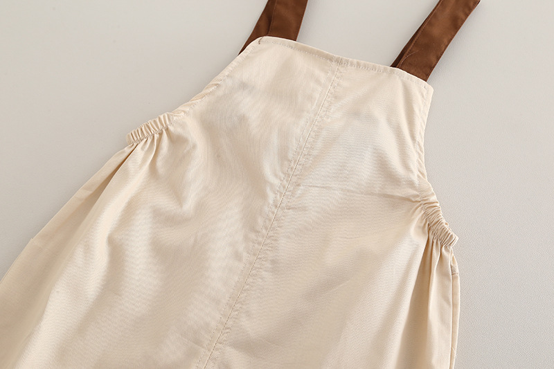 • 미색 스트라이프 포켓 커버 강아지 멜빵 반팔 슈트