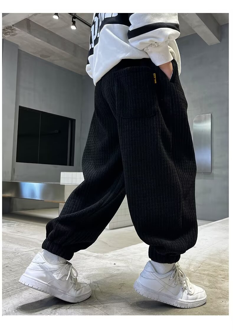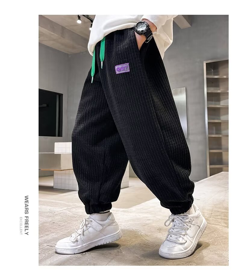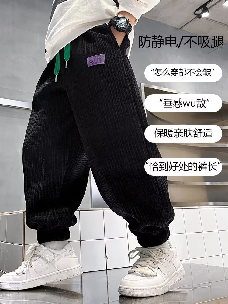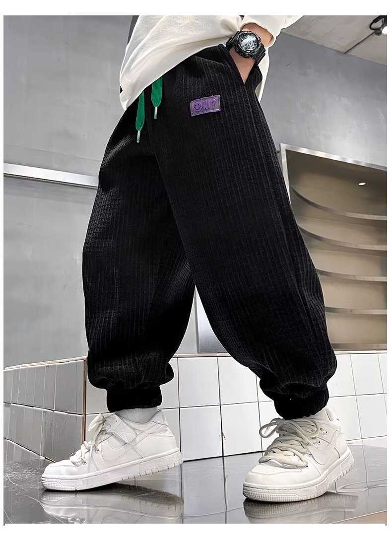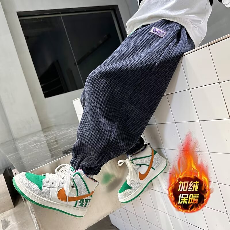 소년 바지 기모 봄 가을 겨울 2025 새로운 어린이 겨울 스포츠 바지 소년 겨울 체니 바지