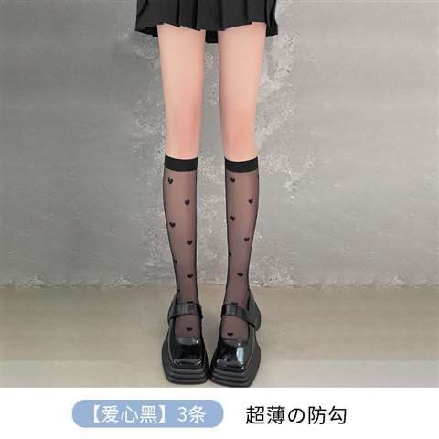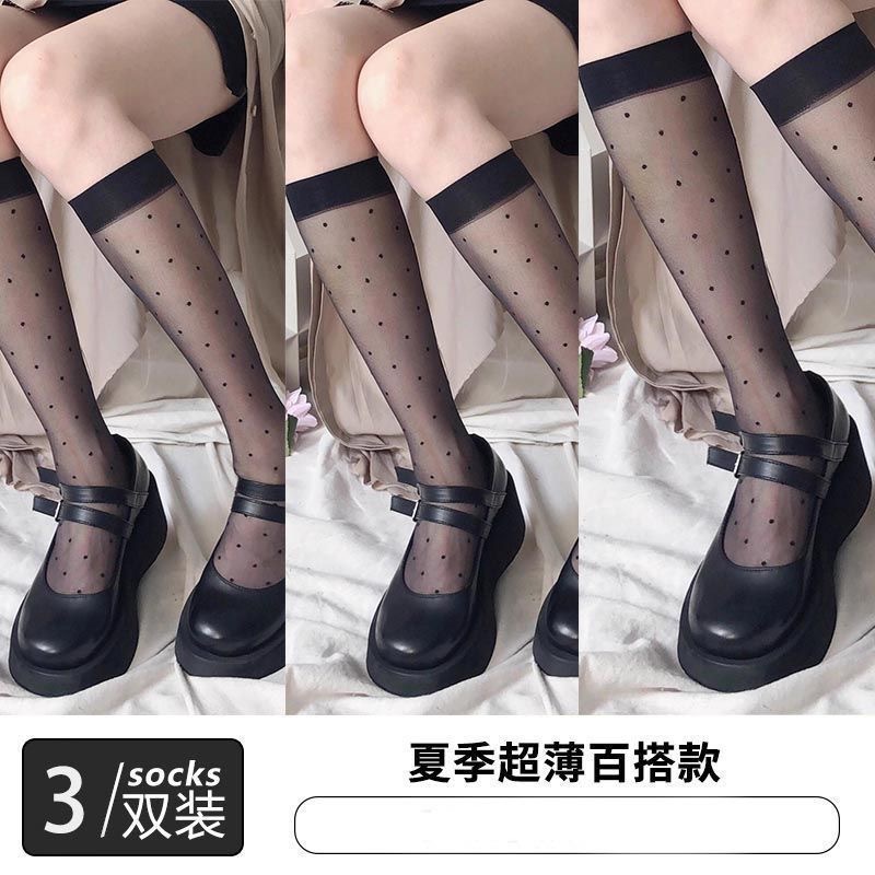 양말 여성의 귀여운 일본 스타일 Jk 순수한 욕망 스타일 새끼 양말 사랑 도트 여름 검은 실크 스타킹 스파이스 소녀 반 다리 스타킹스토어 가기