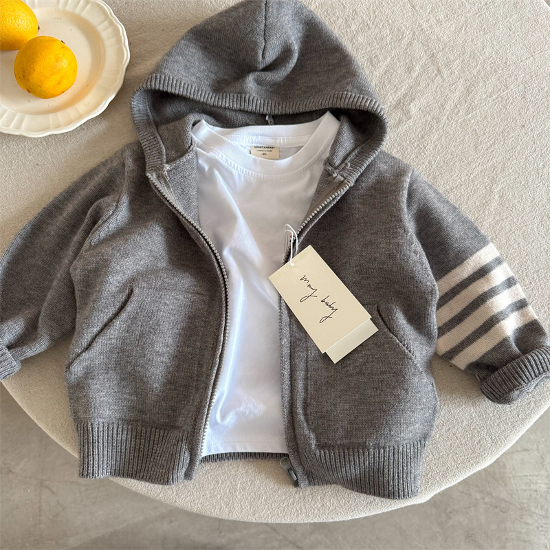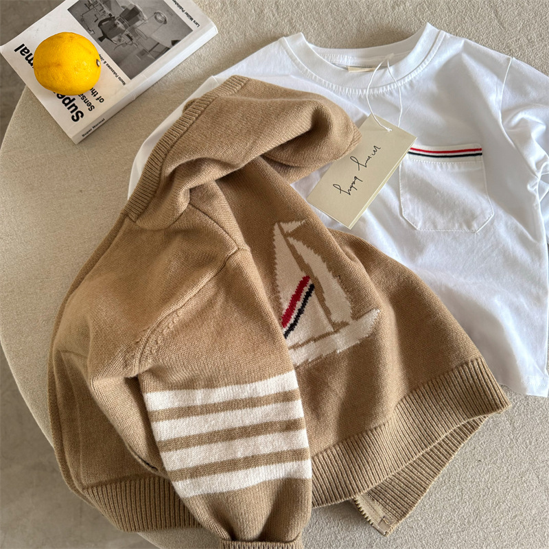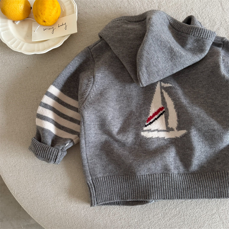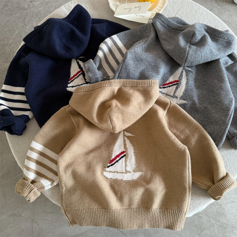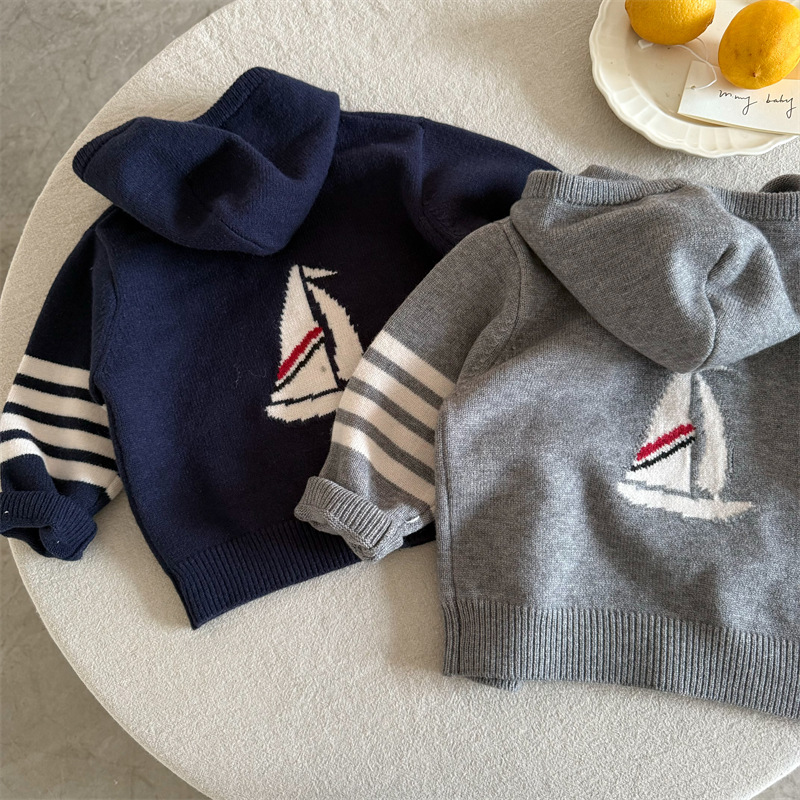 어린이 후드 스웨터 2026 봄 한국판 신상 남녀 아동용 세련된 요트 자카드 아기 지퍼 스웨터 트렌디스토어 가기