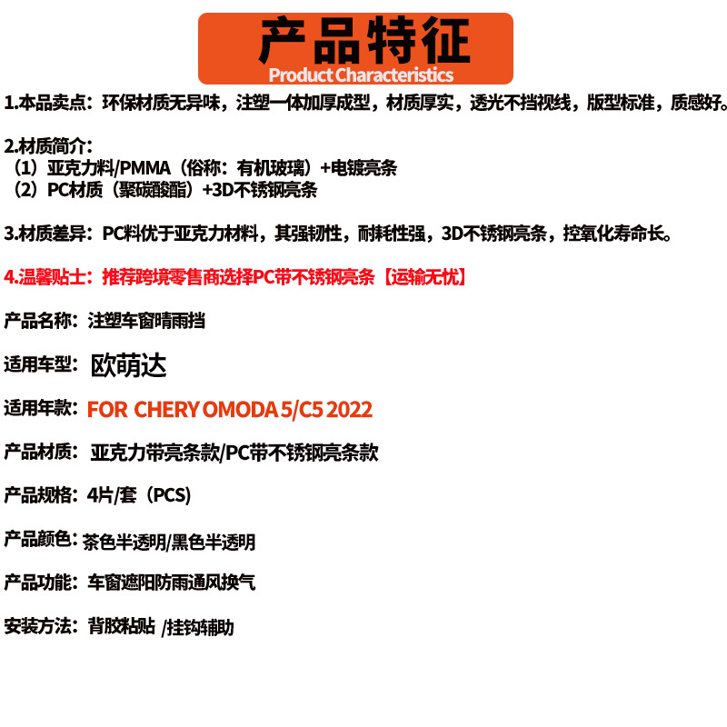 Chery Omoda 자동차 맑은 비 창 비 보드 Chery Omoda C5 창 바이저에 적합