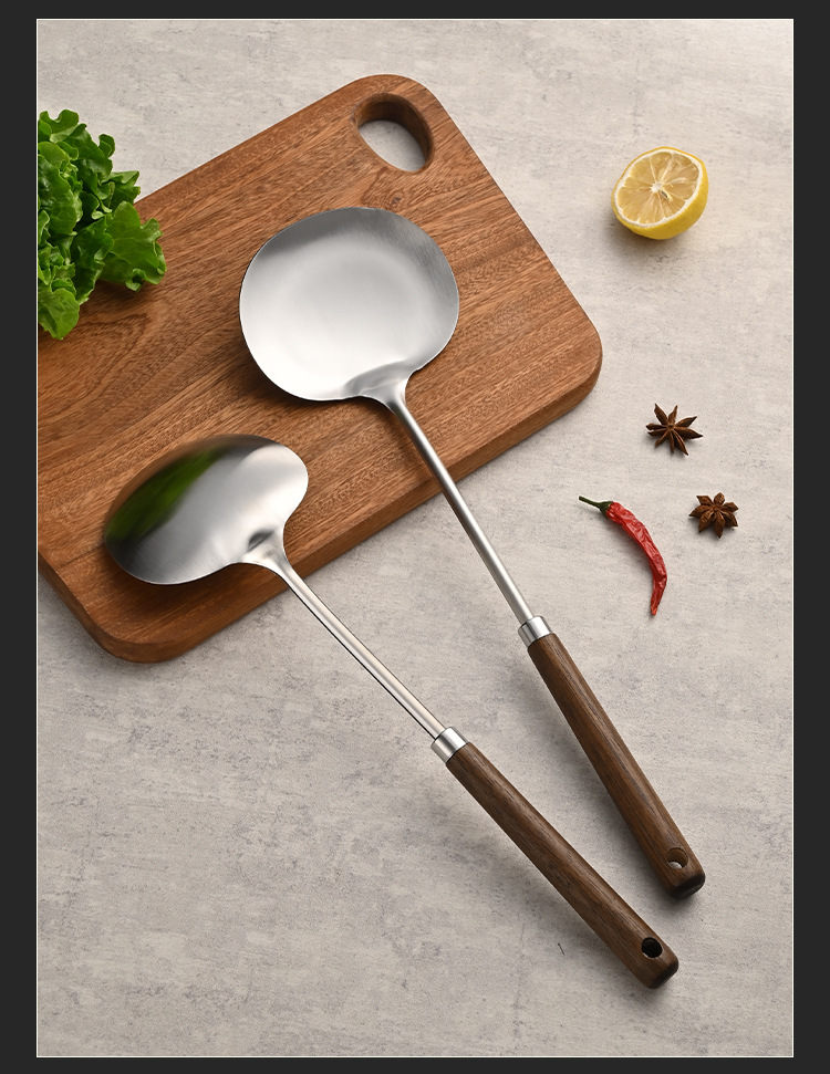 스테인레스 스틸 가정용 버섯 주걱 요리 숟가락 특별 요리사 요리 숟가락 구이 저우 긴 손잡이 요리 숟가락 주걱